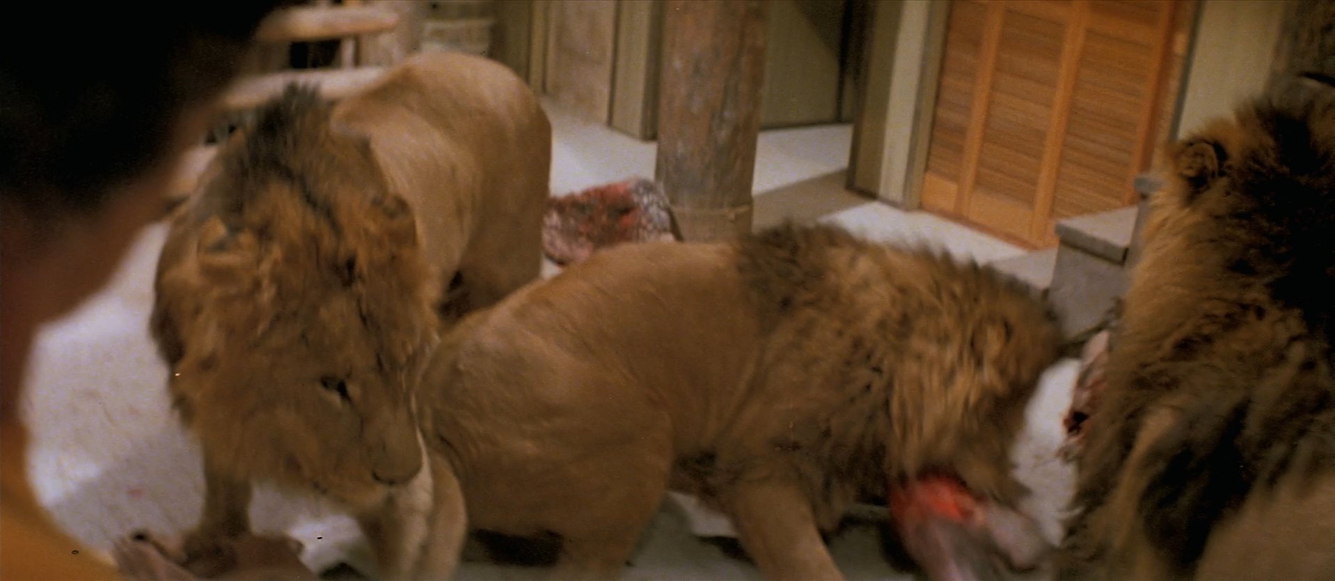 They had dozens of trained and untrained lions and other big cats on set, and they just had the actors go in with them and say their lines. The trainers kept trying to tell them that the more animals they had, the worse it would get.