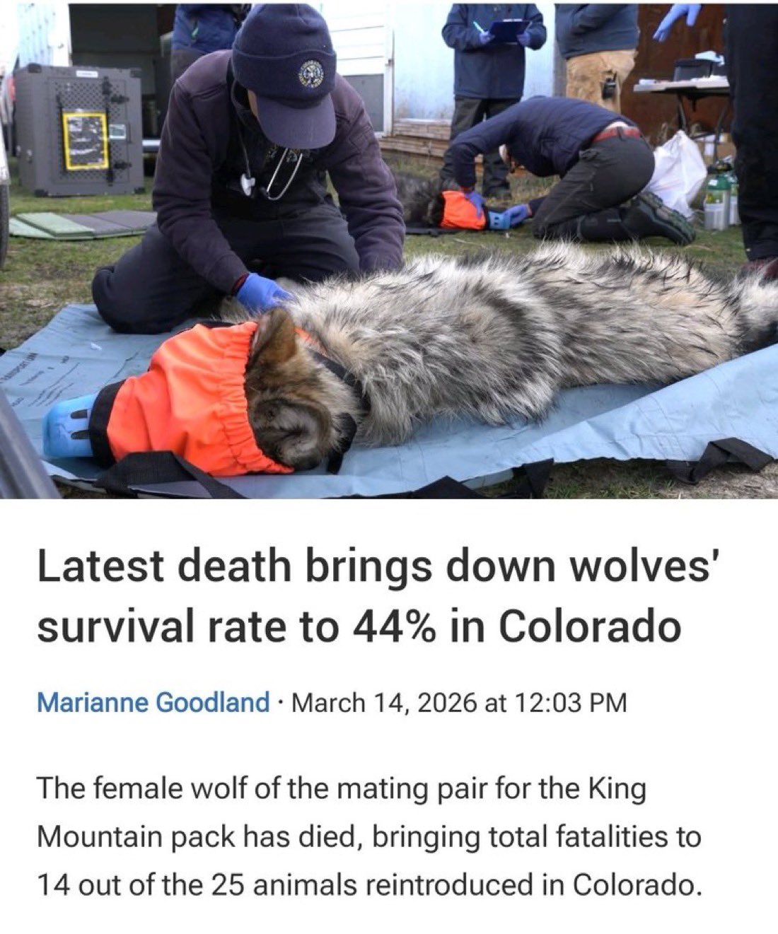>Capture Complications: In January 2026, a breeding male (Wolf 2305) died of acute cardiogenic shock during a routine collaring operation, likely due to extreme physiological stress.