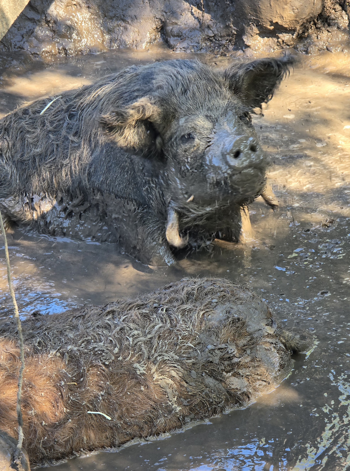 >>5110836Yeah all the moms are very trusting with me, but sadly my pig's stupid genetics are all very skittish. The sows and boars are all super friendly, but their children are skittish for some reason. Apparently it is called hesitancy or something and it is at least somewhat genetic.Slightly skittish pigs are sort of easier to manage in some ways than super friendly ones, so it's whatever.