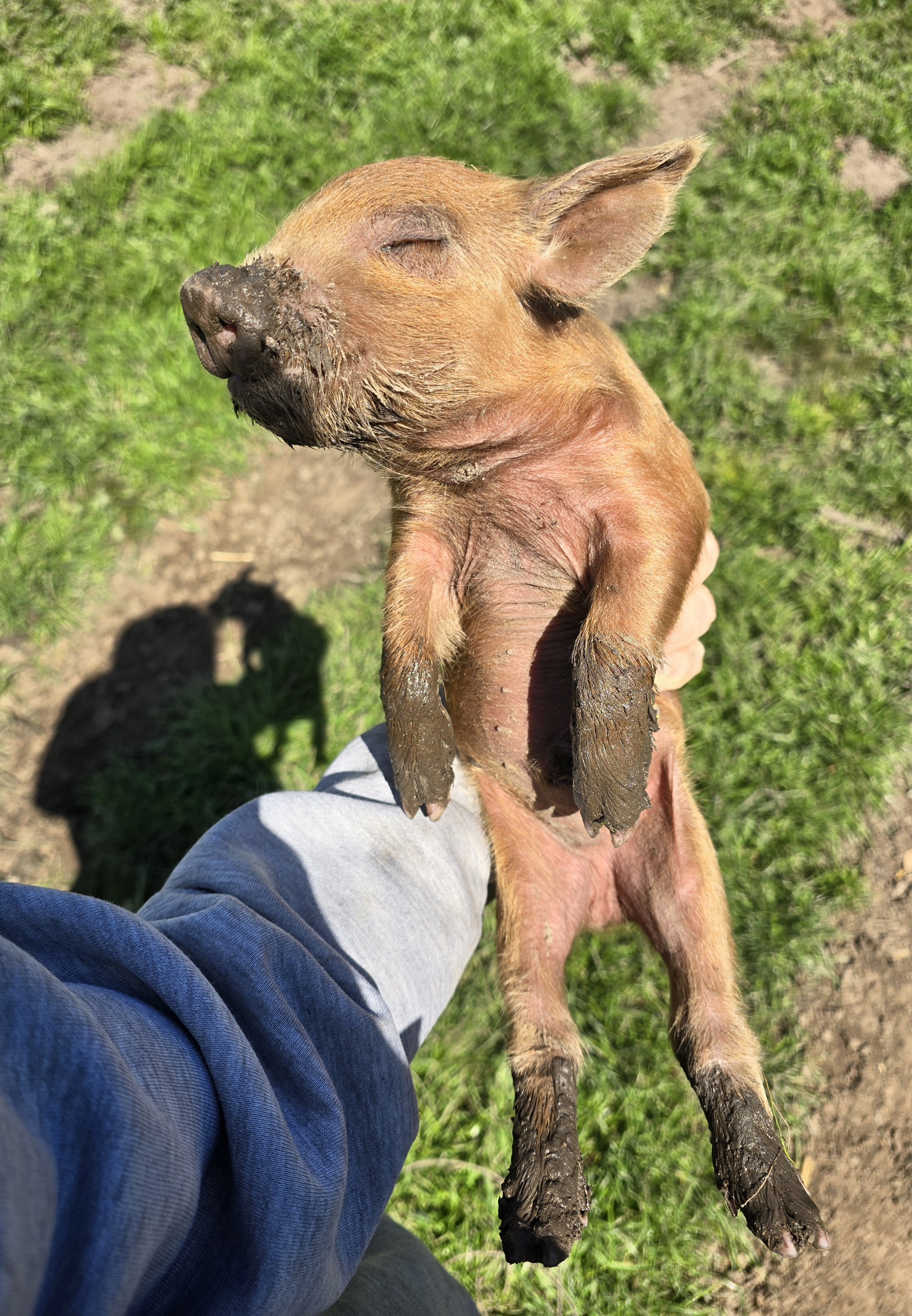 Sometimes the piglets are in such a deep sleep you can pick them up and they'll still be sleeping for a little while.