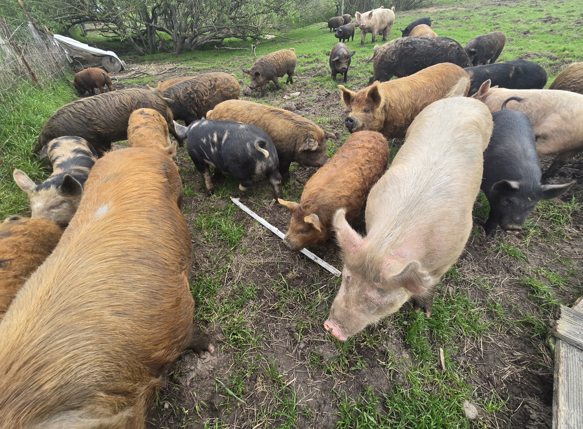 >>5113599Factory farmed pigs are possibly one of the worst because pigs are such smart and feeling animals with strong natural instincts. Rotational pasture like I'm currently re-establishing on my property is ideal because they live outside with plenty of space, always have fresh pasture to forage, and actually get to be pigs. Rotational pasturing done right also improves soil quality and even helps with carbon sequestration. Eventually I will have meat birds following the pigs, which is one of the best combos for rotational pastures. The birds spread the pig manure, add their own, and help eat/kill parasites. There are other ways to raise pigs outside that don't include rotational pasture that I like, but any sort of bare earth/heavily mulched feedlot style outdoors is kinda cope for a humane/natural life system. Outdoors is better than 100% indoors, but still not ideal.I believe my usda slaughter guys do the electrical stunning + bolt gun. Aside from healthier and tastier meat I raise pigs and chickens on 100% pasture specifically because it is more humane and the animals get to live a more natural life. I've heard so many people tell me that they could never go back to storebought eggs or pork after trying my products even though the eggs and pork are 2-3x more expensive than what you could buy at costco or whatever. It's pretty cool.