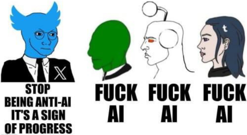 >>947081110>eastern worldAI is super cool!lol what is ChatGPT?>western worldREEEEEE AI SLOP NO AI I use ChatGPT every day but scumfuck corpos shouldn’t!!!