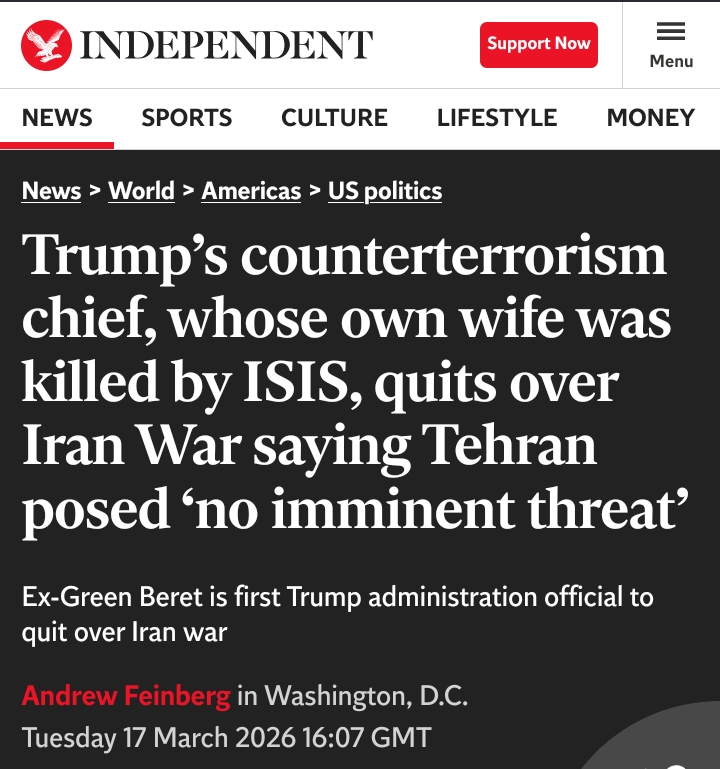 Joe Kent, former Green Beret and the director of the National Counterterrorism Center, has resigned from his post over President Donald Trump’s decision to take the U.S. to war with Iran.Kent announced the move in a post on X, writing he could not “in good conscience support the ongoing war in Iran” because Iran posed “no imminent threat to our nation.”By the way, little do you realize the wheels are already in motion about an upcoming draft.