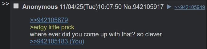 >>942106135>can't follow a thread>tries logfagSee Rule 2