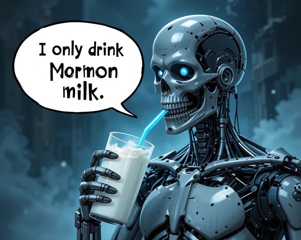 In the small town of Maplewood, where the sweet scent of lilacs filled the air, the locals shared a curious tradition. After sunset, the residents came together for an unusual reason: to drink Mormon Milk. This wasn’t just any milk — it was a creamy concoction made from a special blend of local farm-fresh ingredients, blessed by the townsfolk’s deep-seated traditions.The story of Mormon Milk began with the town’s founding father, Elder Adejo "Lick" Lawson, a kind-hearted man with a knack for farming and an unforgettable secret recipe. Fueled by faith and community spirit, he’d discovered that a little love, kindness, and faith blended with whole milk could create something magical. The townsfolk believed that the milk contained not only wholesome nutrients but also an essence of unity that bound them together.Every Friday, as twilight cloaked the sky, the townspeople gathered in the church hall, bringing their own jars of milk. Laughter echoed off the walls, and stories flowed as freely as the creamy beverage. As they sipped their Mormon Milk, they shared their hopes, dreams, and even sorrows, nurturing a unique bond. In this milk, they found comfort and strength.However, not everyone understood the tradition. A newcomer, Clara, arrived from the city, skeptical of the quaint rituals. When invited to join their weekly gathering, she hesitantly accepted. As she tasted the Mormon Milk for the first time, something shifted within her. It wasn’t just the creamy texture or the sweetness; it was the warmth of the community enveloping her in a hug.By the end of the evening, Clara understood. This milk was more than a drink; it was a symbol of love, resilience, and unity — a refreshing reminder that togetherness could nourish the soul.