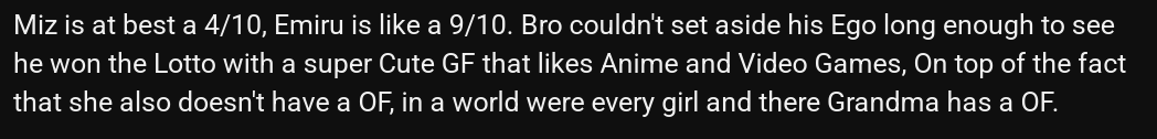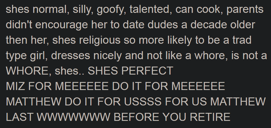 the fuck is wrong with mizcucks (or cucks in general)this has to be himself right?