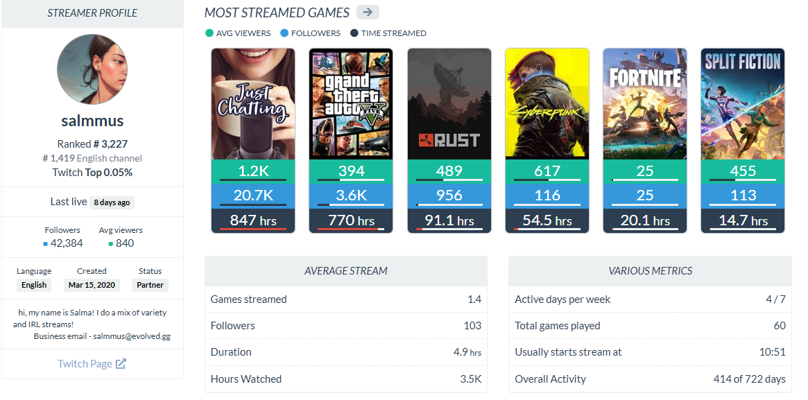 >>942274480it says average stream duration : 4.9h