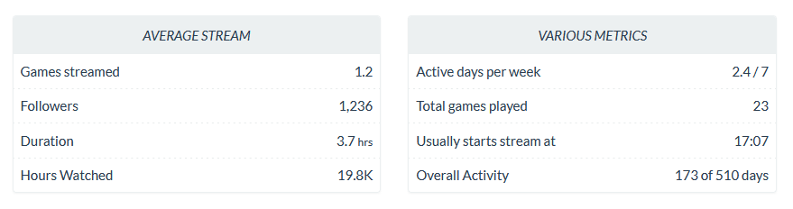 >>942274255Streamed hours would be a more useful metric. You can do one 24 hour stream a week and it would show up as 1 active day, or six four hour streams and it would show as six active days. At the end of the day it's the same amount of 'work'.