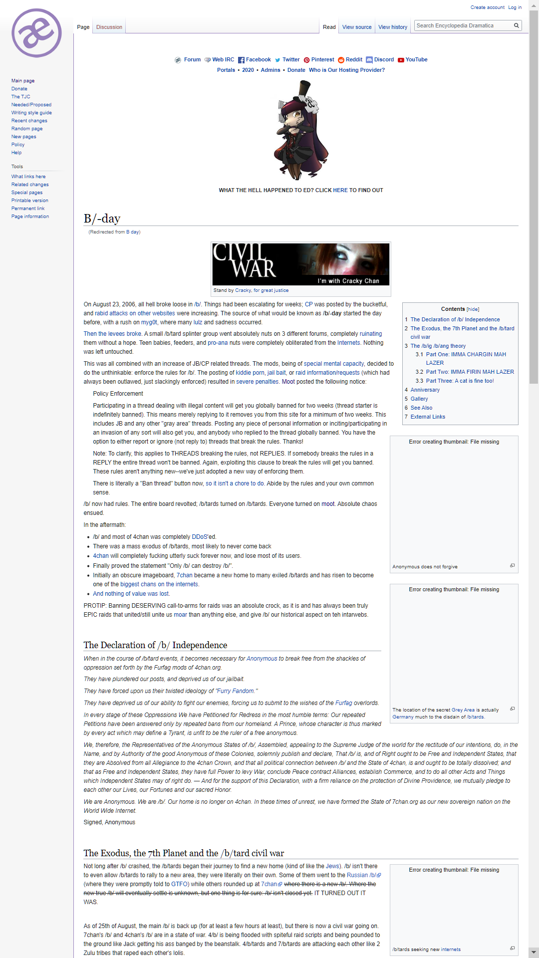 >>942380260> " At what moment did 4chan peak? " ;"/b/ Day" ± 6 months [ or there abouts ]https://www.youtube.com/watch?v=b--Itye8KrU> pic related> ED link related : https://edramatica.com/B/-day -- 碇 シンジ▲▲ ▲