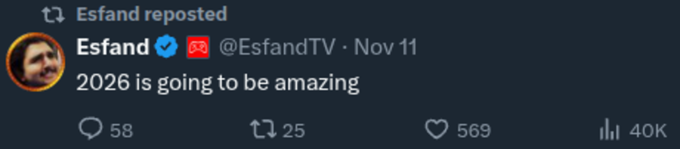 >>942441519just so happens esfand and asmon were talking about a saudi trip at the start of 2026