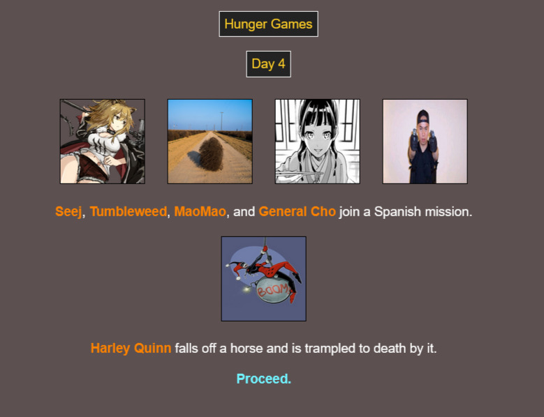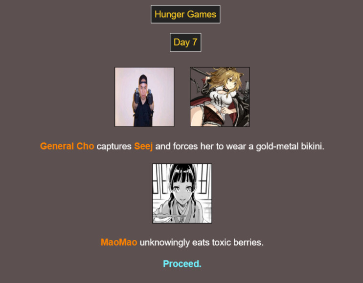 Hunger gamesDesert codefirst 24have an ideas for a code but not sure it's like. unique enough or if i could really put enough events in it to make it worth using