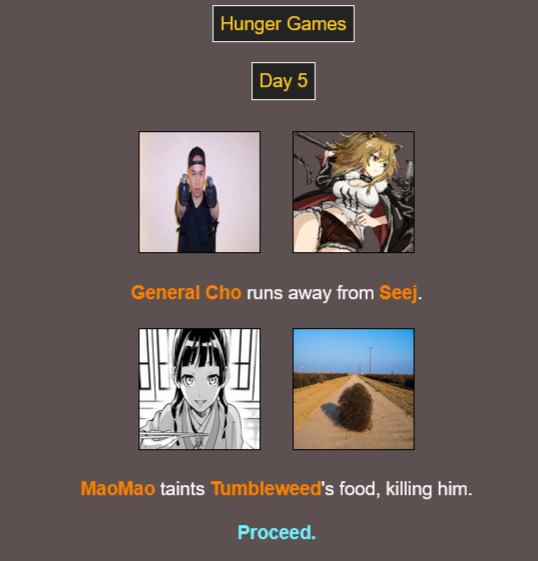 >>942583675>>942583716>>942583743wait never mind i thought some events were fatal that weren't..... apparently contaminated water and pricking your finger don't kill you in the desert... it's really down to cho and seej, my bad
