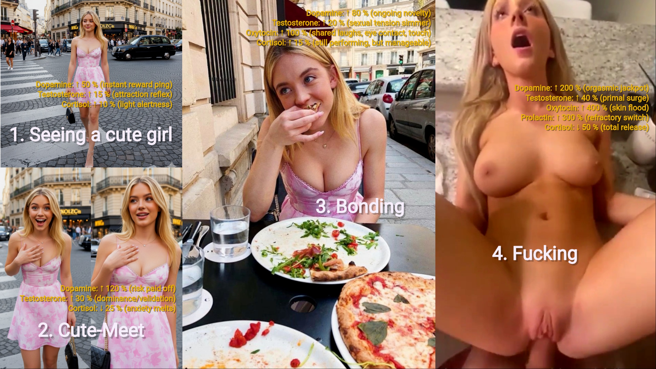>>942643113most men follow the exact same pattern:walking on tip toestaking baby stepstrying to slowly work their way indropping hintsstupid sexual innuendosthen finally thinking it's time to ask her out on a datewomen see this technique everyday and it's boringMAKE YOUR INTENTIONS KNOWN FROM THE VERY BEGINNING"I intend on getting to know you much better""I intend on taking you to that new Thai restaurant and seeing if you prefer a movie or dancing"trust me.. she will hear youYou don't need to sit and wait for an answeronce you've made your intentions clear, pick back up with the interesting conversation that you initiatedwhen you're done with the conversation, she will ask you "what night are we going to the Thai restaurant?" (or, conversely: she WON'T)Even the most handsome men get rejected... It goes with the territorywhen we are learning to walk, we all fall down a few times... we don't fall down once and spend the rest of our lives laying face down on the ground...we get back up again... no woman is obligated to say yesSo you have no right to be upset if she says nonobody climbs into the octagon and instantly becomes Conor McGregorthey've got to have their ass kicked several times beforehandIt's important to learn how to lose gracefully with a smileThat's the pathway to learning how to succeed
