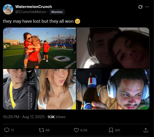>>942666916>They're not as close as people thinkJason is only close to his gf, Faze, and QT/maybe Lud. Everyone else is irrelevant in the grand scheme of things.