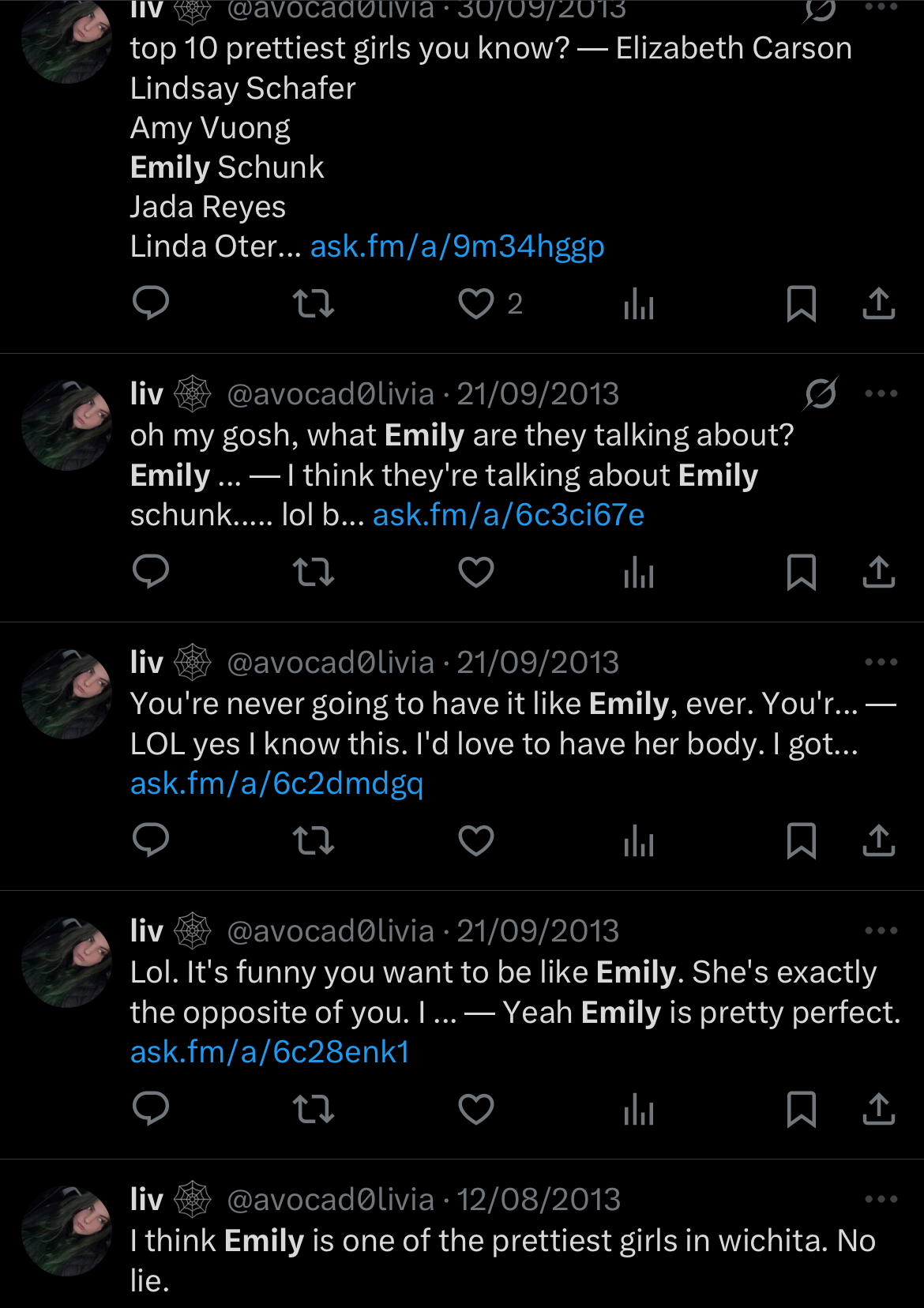 >>942663230>>942663216>>942663176she legit was. not even baiting. you do realize he was in her top 5 most watched last year? like you do realize she watches him often
