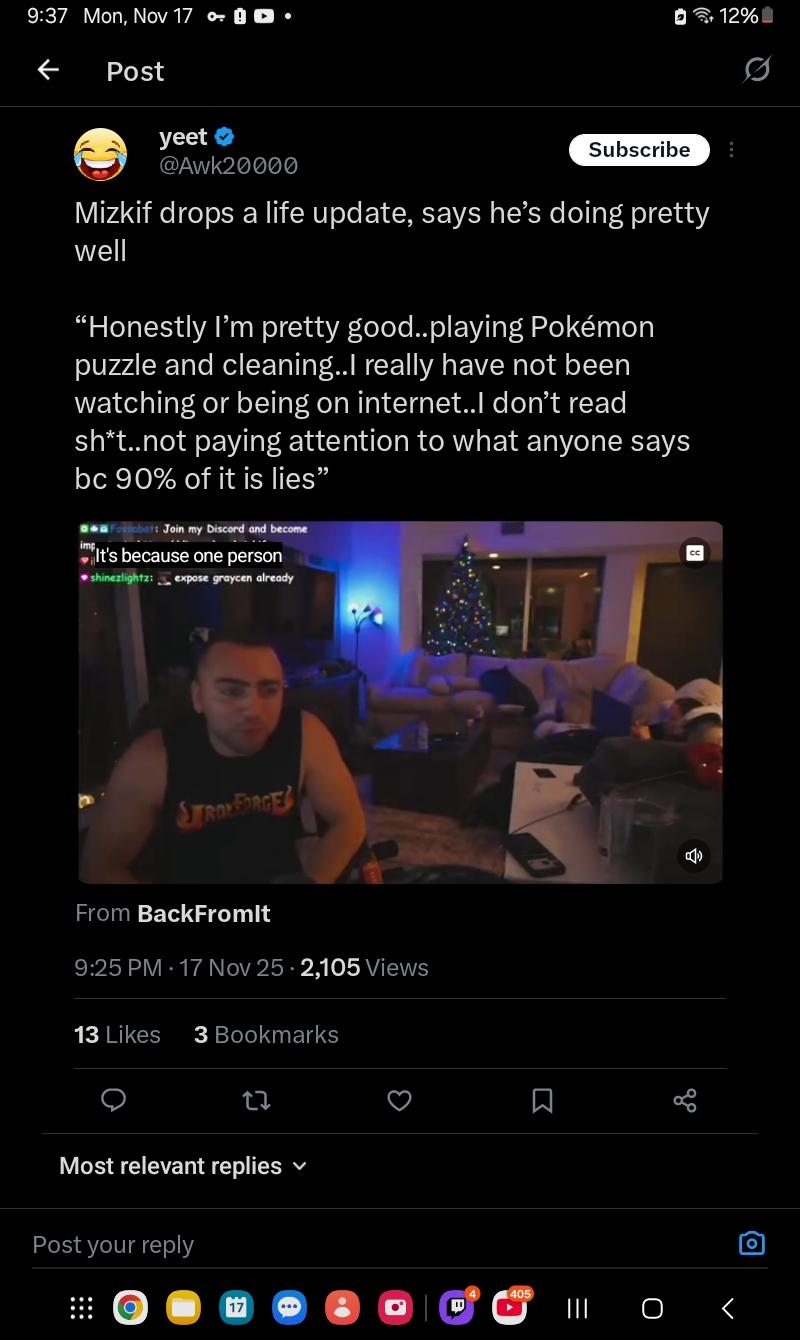 Old clip when he still had his hair. More confirmation mantis is his gf. Literally denies her being his gf because he finds her too ugly to flex with. Thats the kind of shithead he ishttps://x.com/veizau/status/1990580716141457614?s=46&t=cW7WWviCZSrz8wFSn5wW0w