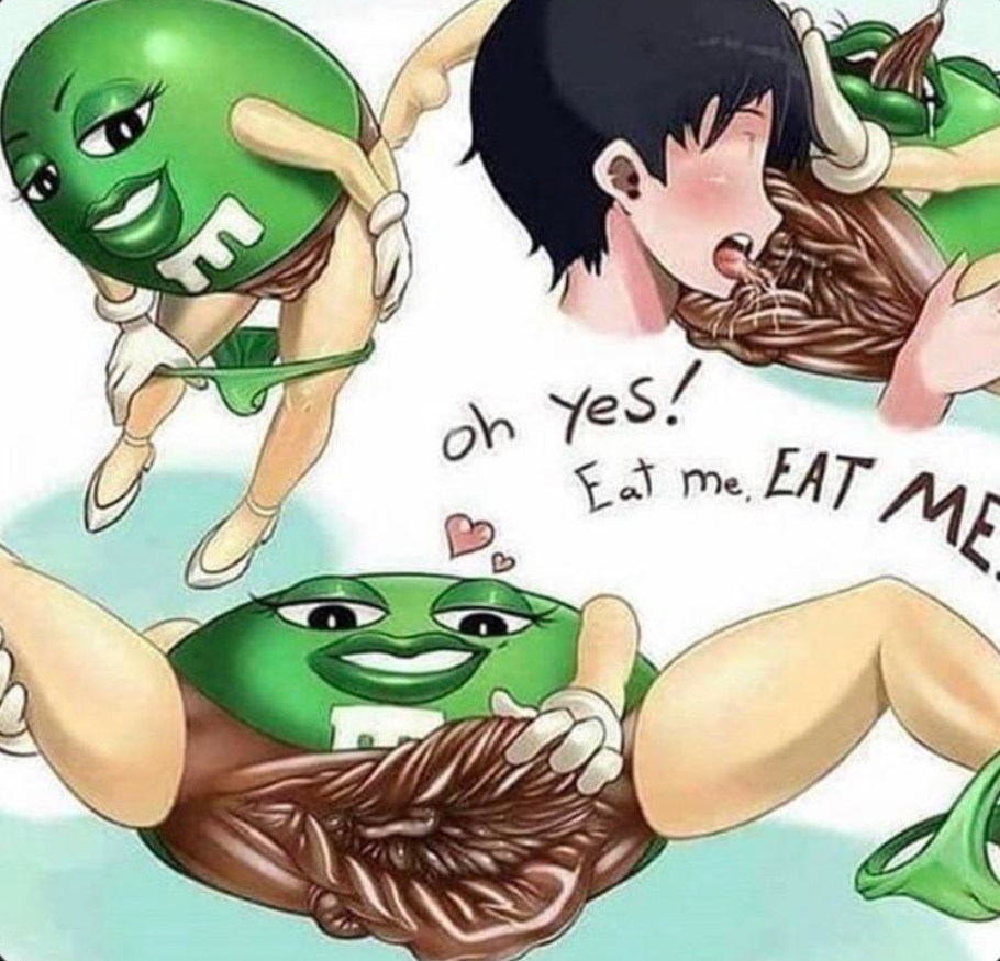 i want to fuck the green m&m so badlyi want to fucking destroy her green pussy with my monster m&m craving cockjesus christ shes so fucking hot with her sexy ass lips and her slender legsi just wanna grab her smooth candy covered sides and ram my cock straight between her slippery dripping legsi wanna make the green m&m my bitchturn her into a cum craving slut whos sole purpose is slobbering down my hunk spunk(edited)every waking moment of my life i spend vigorously masturbating to how sexy she isi imagine showering her with my creamy baby gravy while she licks it up and calls me a good b