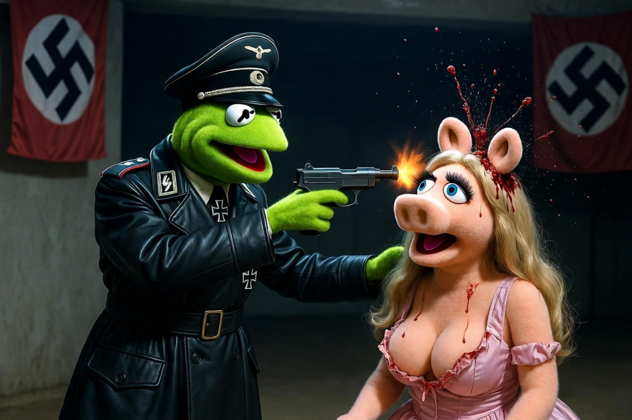>>942794896Hope to see gens of Kermit executing that fat bitch miss piggy, like pulling the lever on the trap door for a hanging or shooting her in the head with German SS nazi gear on kek