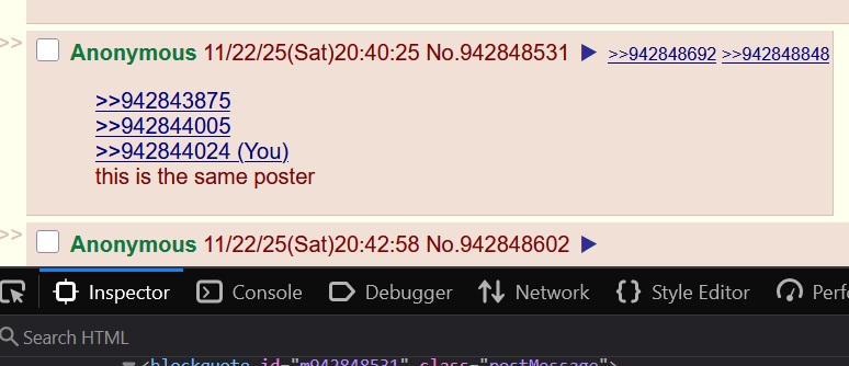 >>942849018Post a video of you refreshing the page and looking at >>942848531Bonus points if it's recorded from a camcorder.