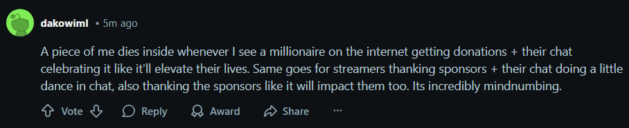 >>942976811Ya look if you see any streamer constantly talk about how they don't give a fuck about the haters or "the haters don't get to me at all" just know that it's really bothering them.