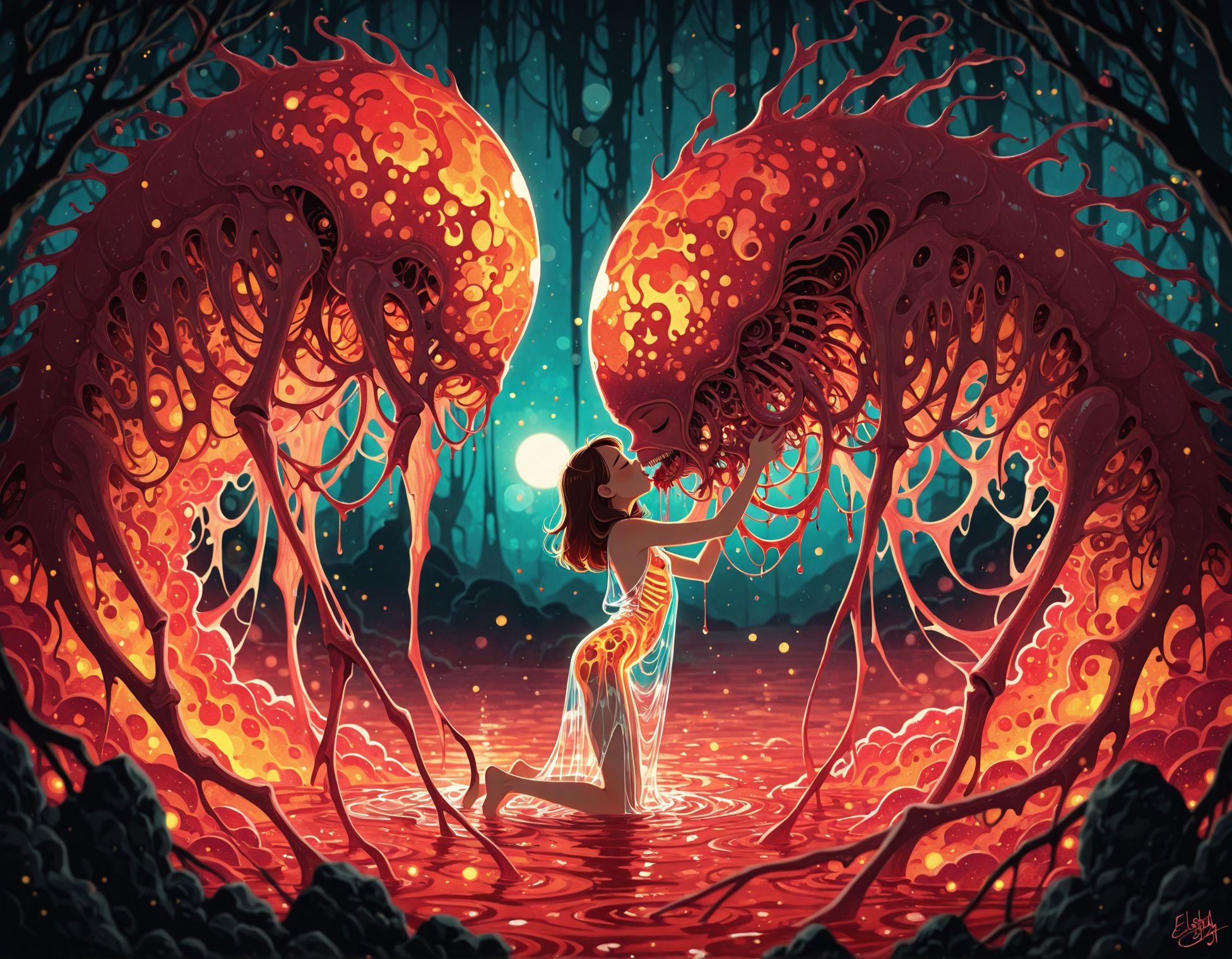 Another Harmony image. I just like the lighting on this one.There's one other character I've not baked yet, Quiet Neigh. Trying to sort her out so she's not a generic Rice Shower 2.0 . Average looks, tender in nature, artist, but also an emotional counterpart to Flame Flickers energy. in group or single RP interactions, the AI surprises me with the kind of output she gets generated.