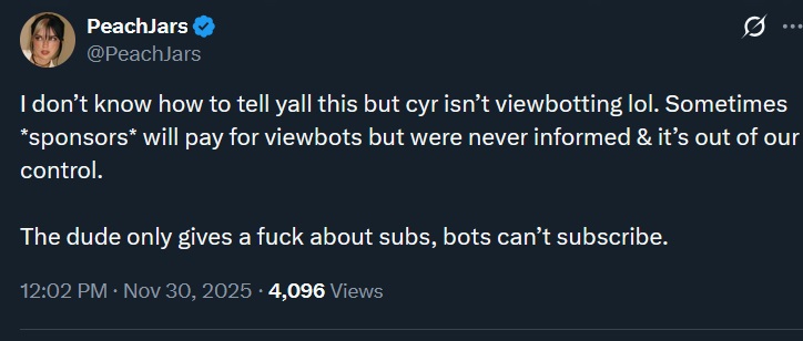 Peach confirms Cyr isnt botting kek