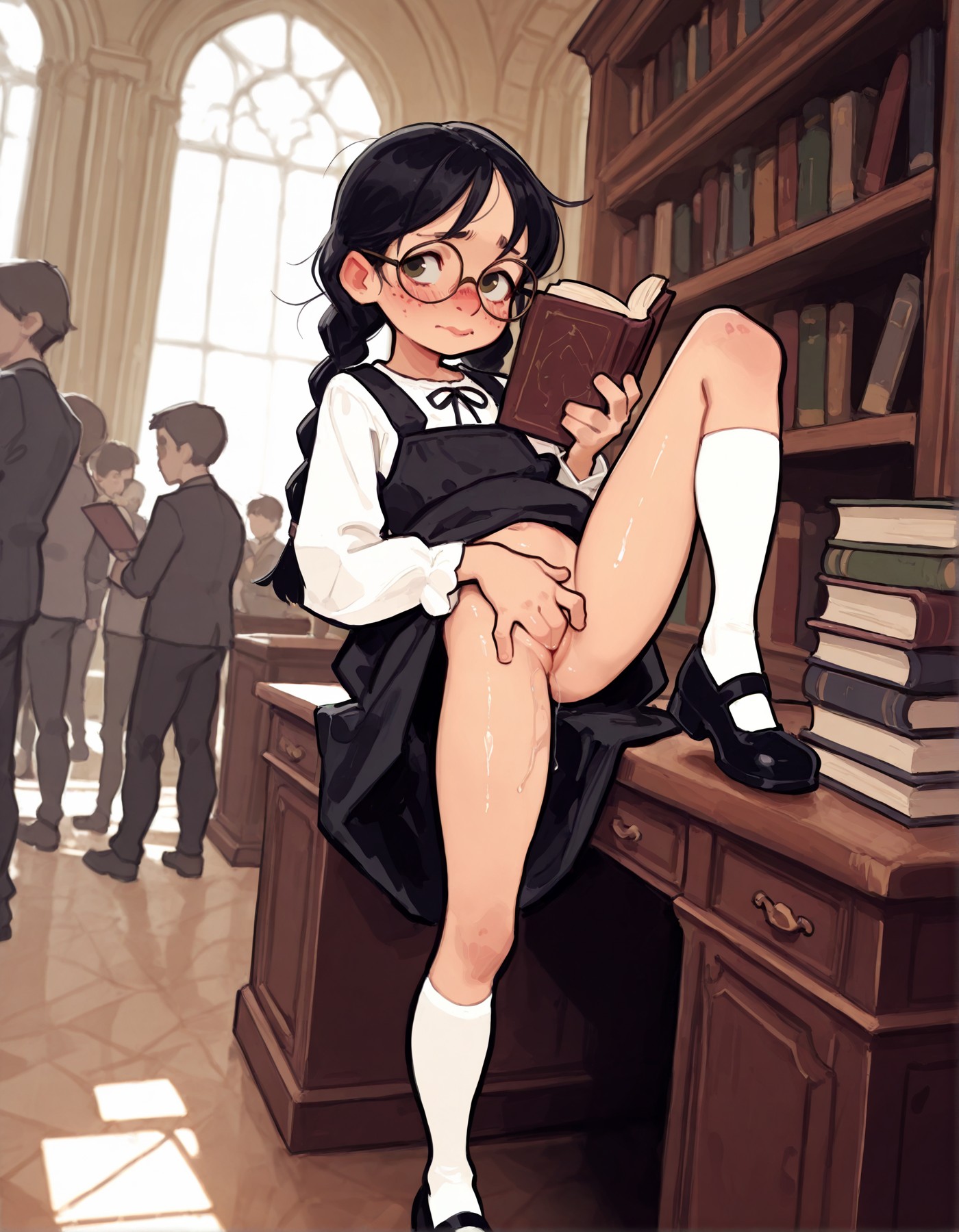 >>943197388Hey Cube.Requesting Bao secretly fingering herself in a library with people in the background while she looks around to see if anyone is looking. You can drop the shoes/socks if that messes up your gen.I really like your style!