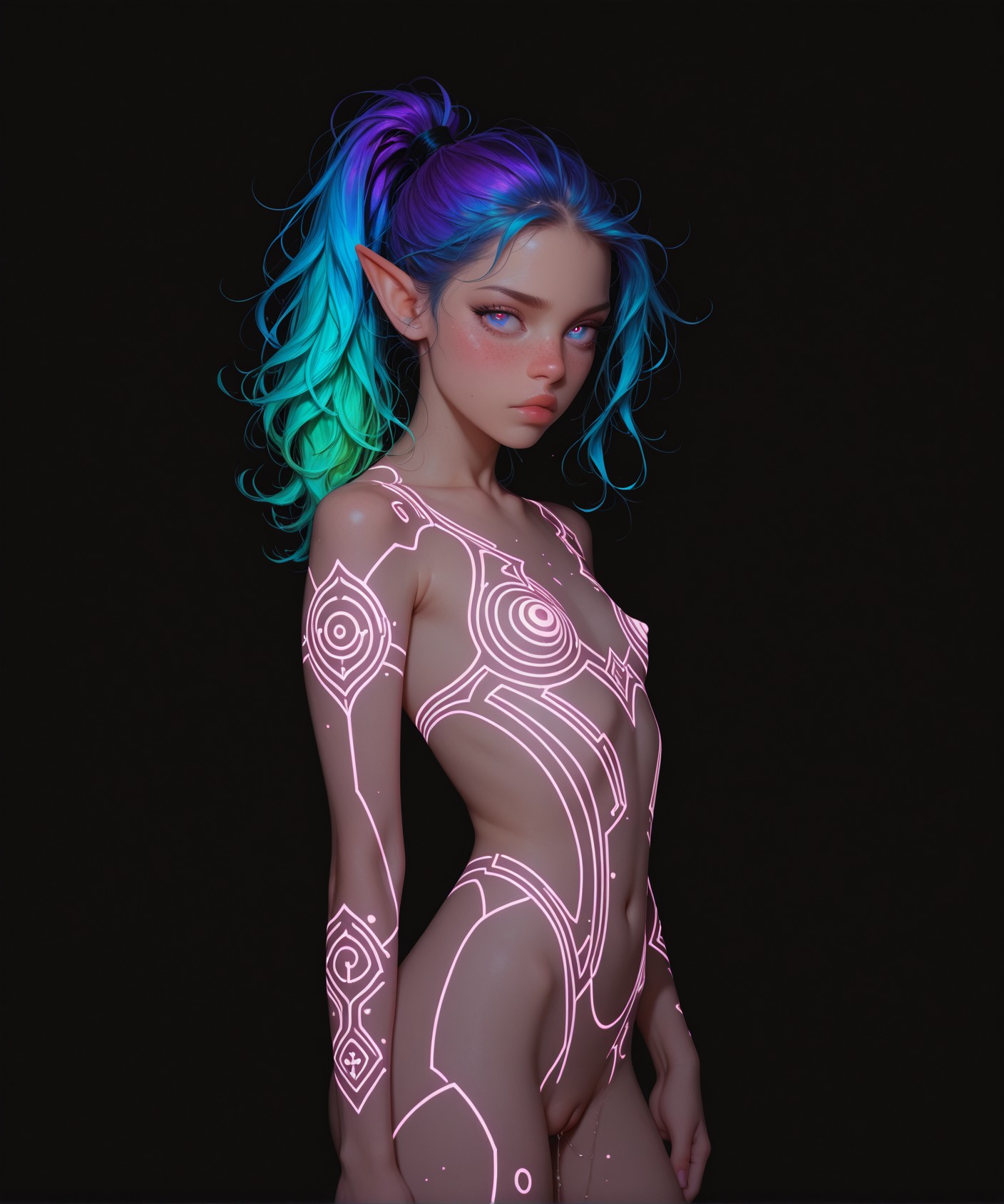 >>943299376>full length image, full body view, proportionate, breathtaking, stunning beauty, masterpiece, amazing quality, pleasing aesthetic, center frame, solo, newest, (bold outlines:1.1), (black outline:1.2) (crisp lines:1.3), (detailed face:1.2), (detailed eyes:1.2), defined texture, hyper realistic, artist study hands, Just removed the 3d and glossy. Interesting result. ignore the one fucked up finger..