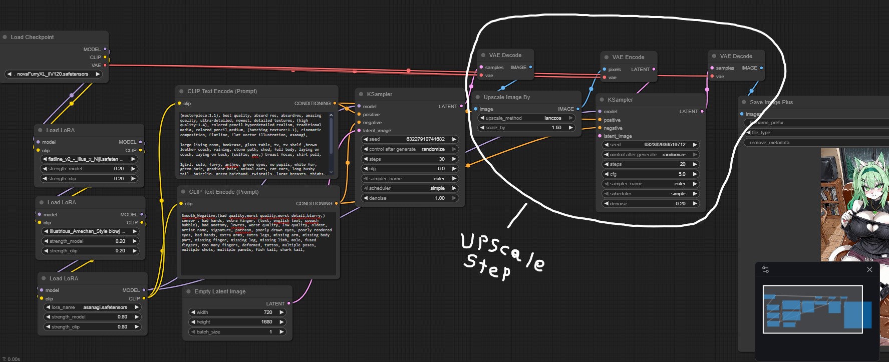 >>943297735heres my workflow with the upscale step circled. not the best but gets it done.