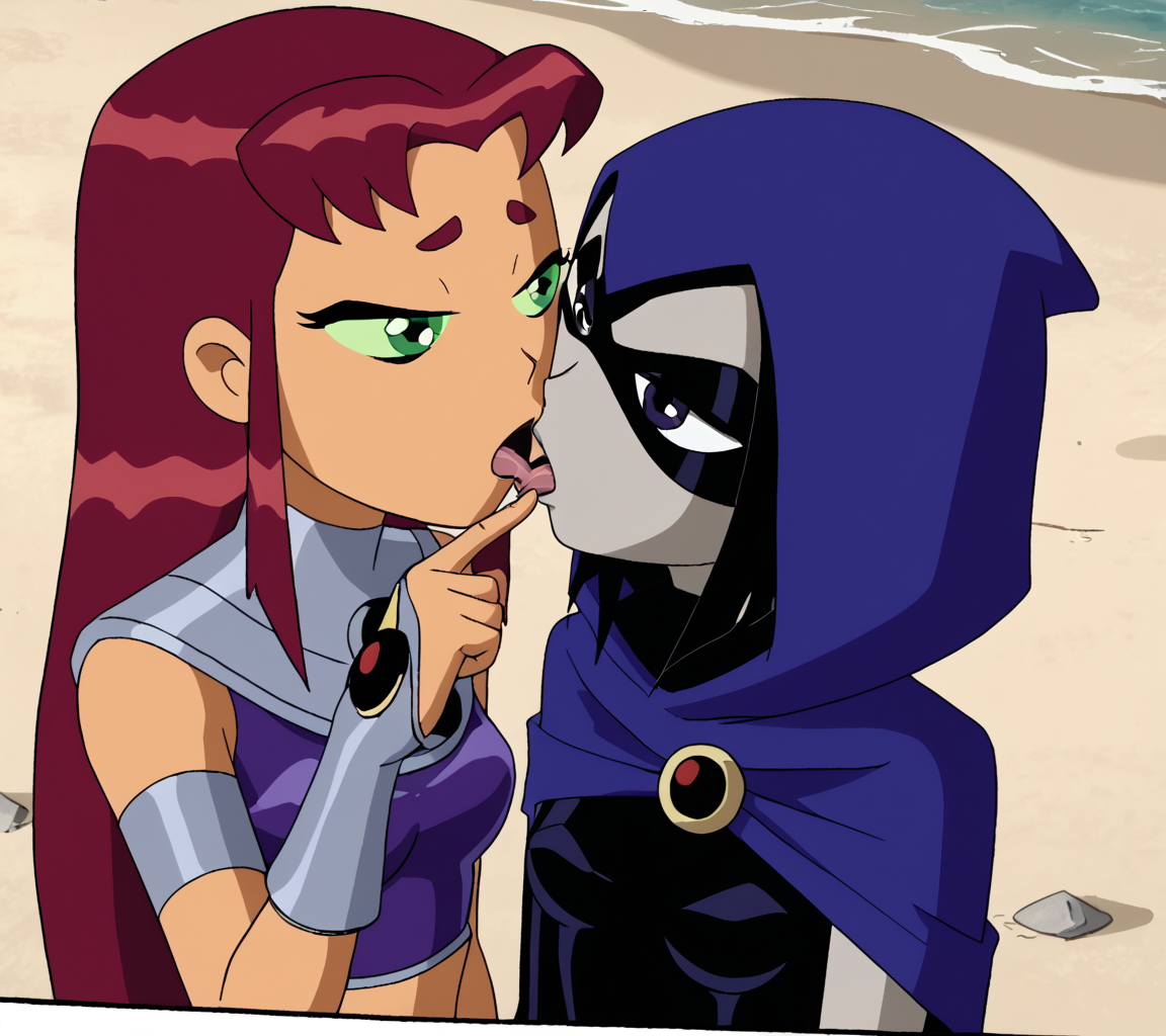 >>943297859>oh that is niceThanks>damn turp you really made blanks chick just let it all hang out huh...Everyone was doing it, I had to cash in on the hype>>943297757Prompt:2girls, loli, raven \(dc\), city, areolae, loli starfire, french kiss, night timeNegative Prompt:watermark, patreon