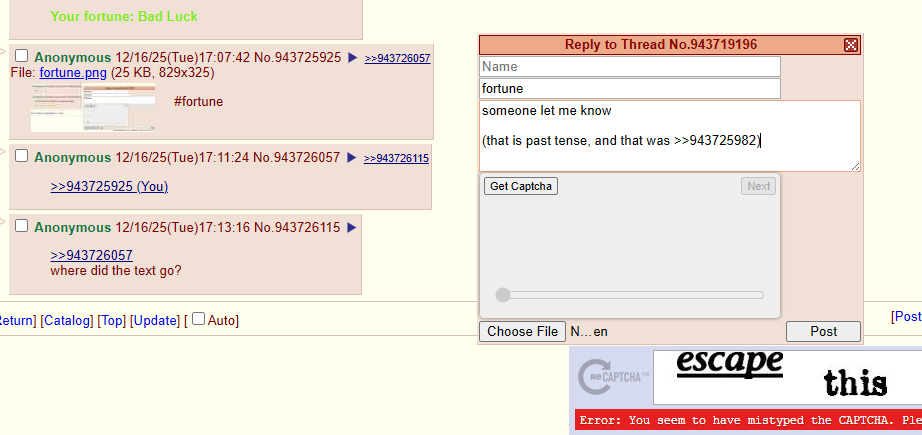 >>943744121Your fortune: Reply hazy, try again