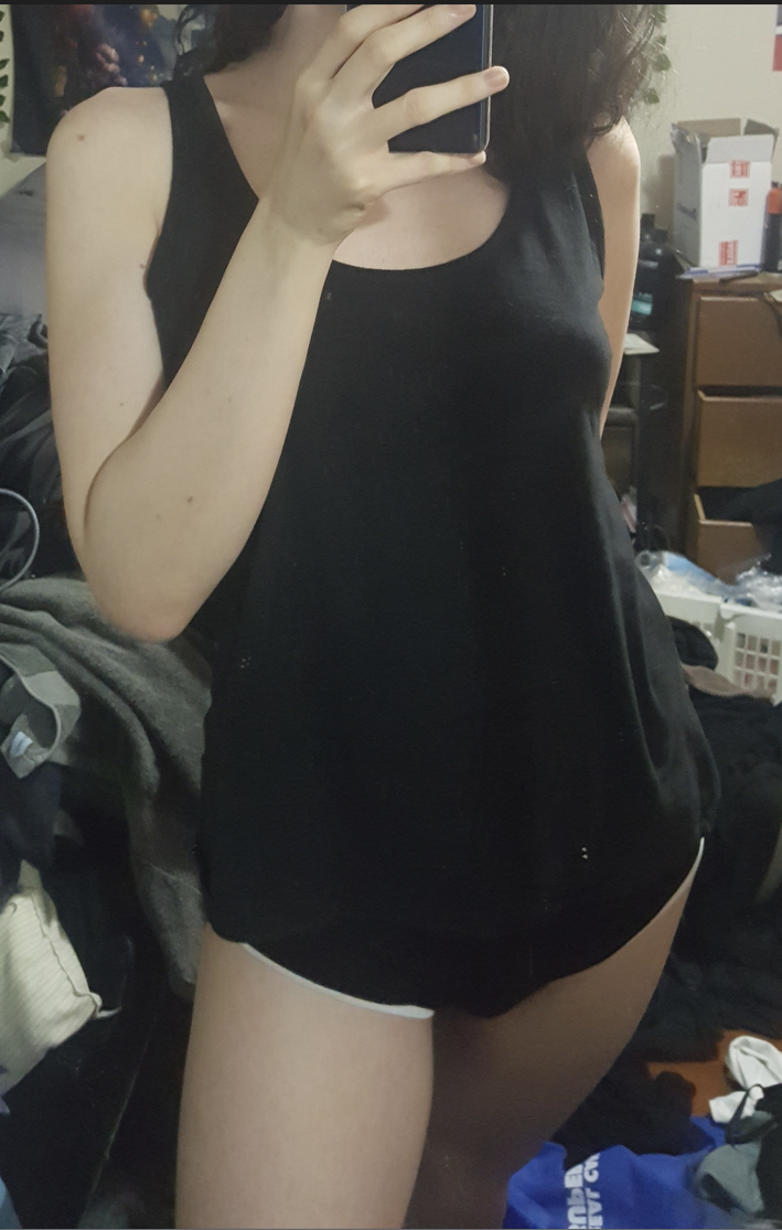 It was really hot wearing her tight xs lingerie.