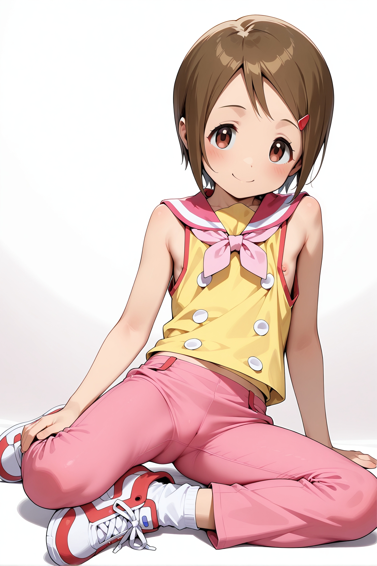 >>943876178( yagami hikari, yellow sleeveless shirt, two white buttons, pink neckerchief, hot pink pants with white socks and red and white sneakers, smile, flat chest, loli, nipple peek, flat nipples, blushing, undressing, bend over, from behind, flat ass, anus, cleft of venus, mons, vulva, arched back, ass focus, spreading own pussy, hymen, spread pussy, urethra, clitoris, excessive pussy juice, moaning, :1.5)
