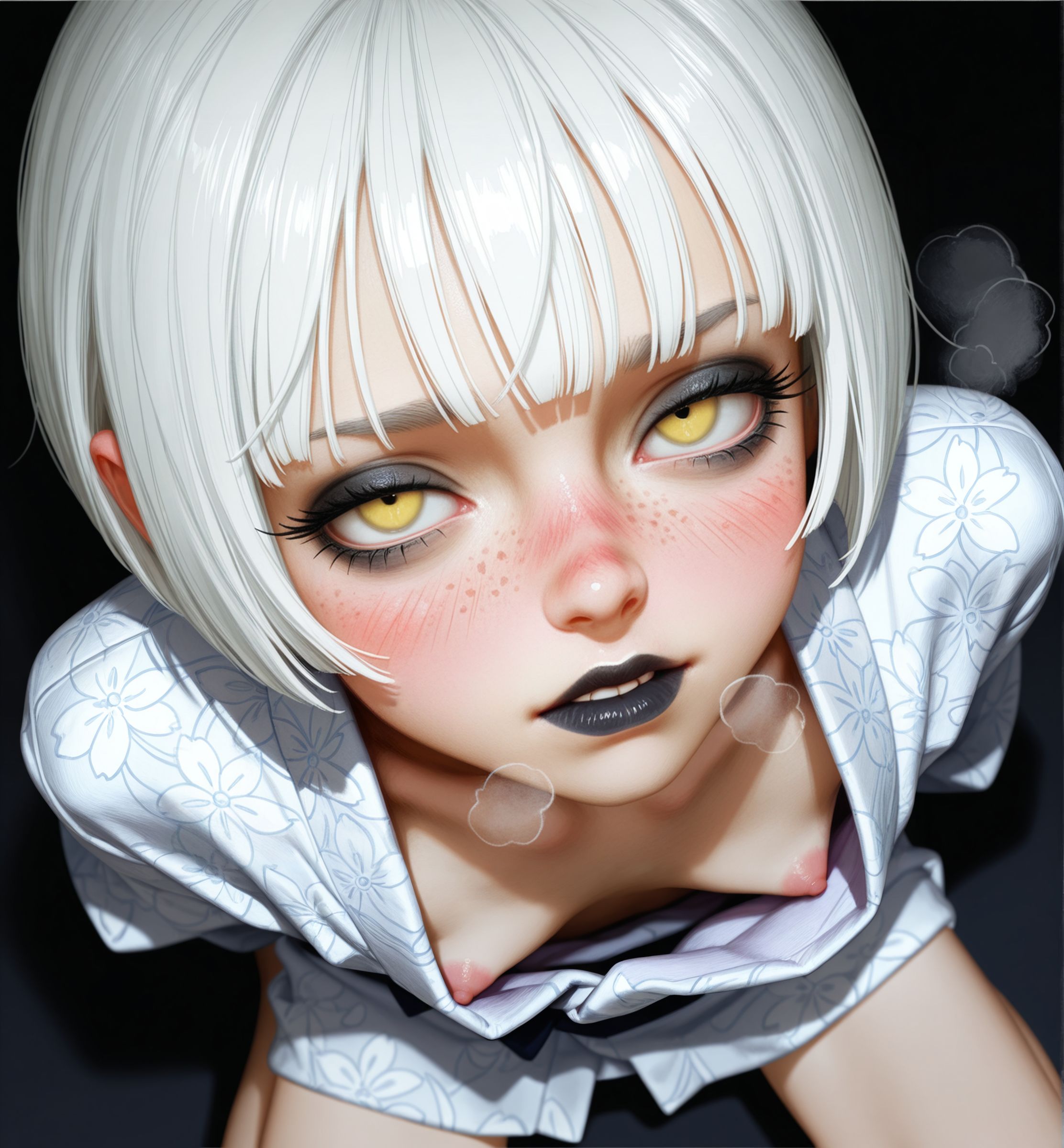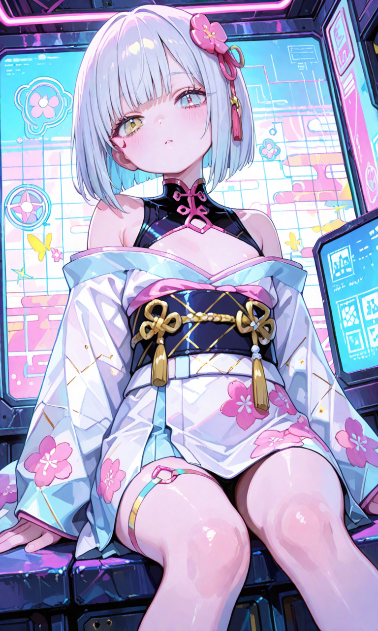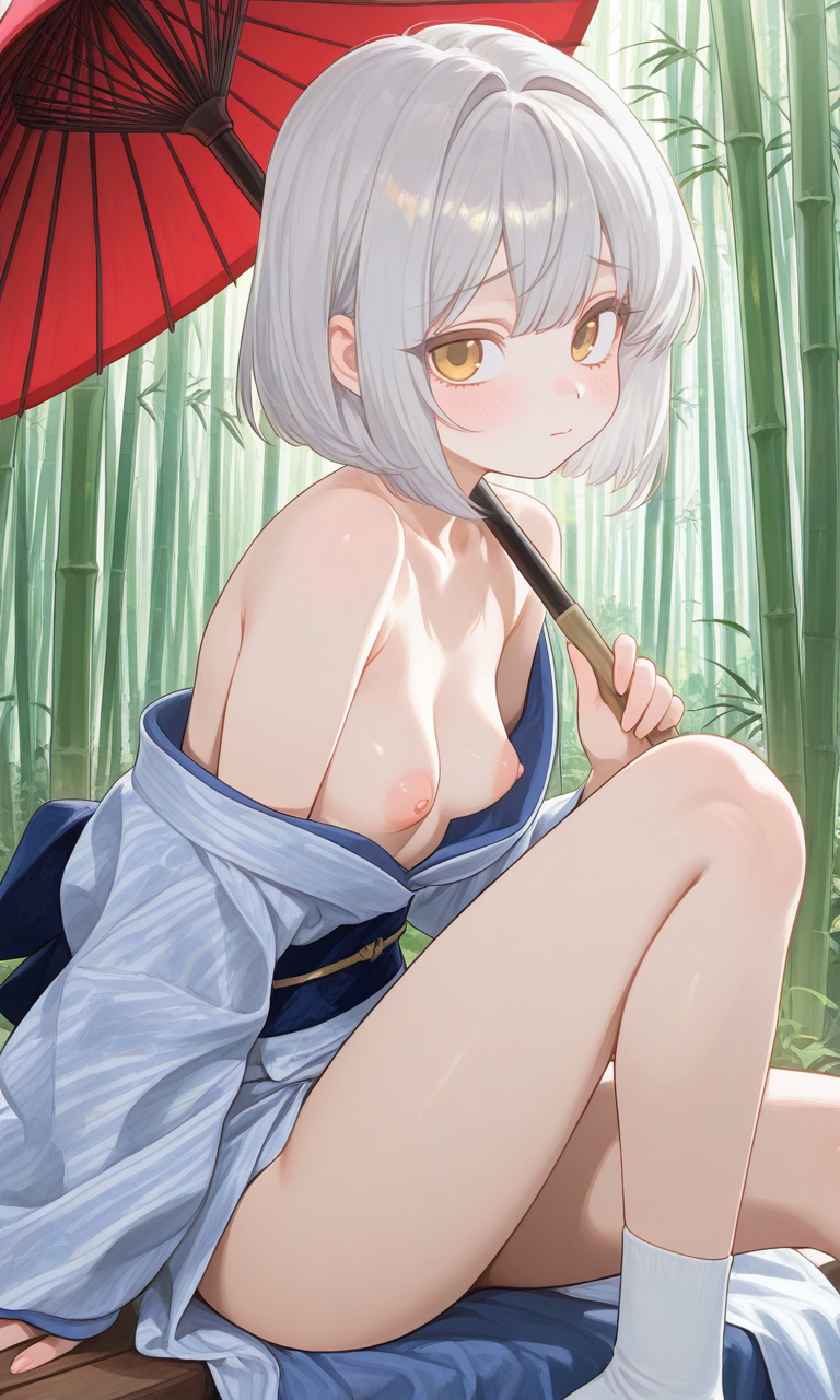 Requesting my daughterfu. She's got silver hair and gold eyes with a bobcut hairstyle and Japanese aesthetics.