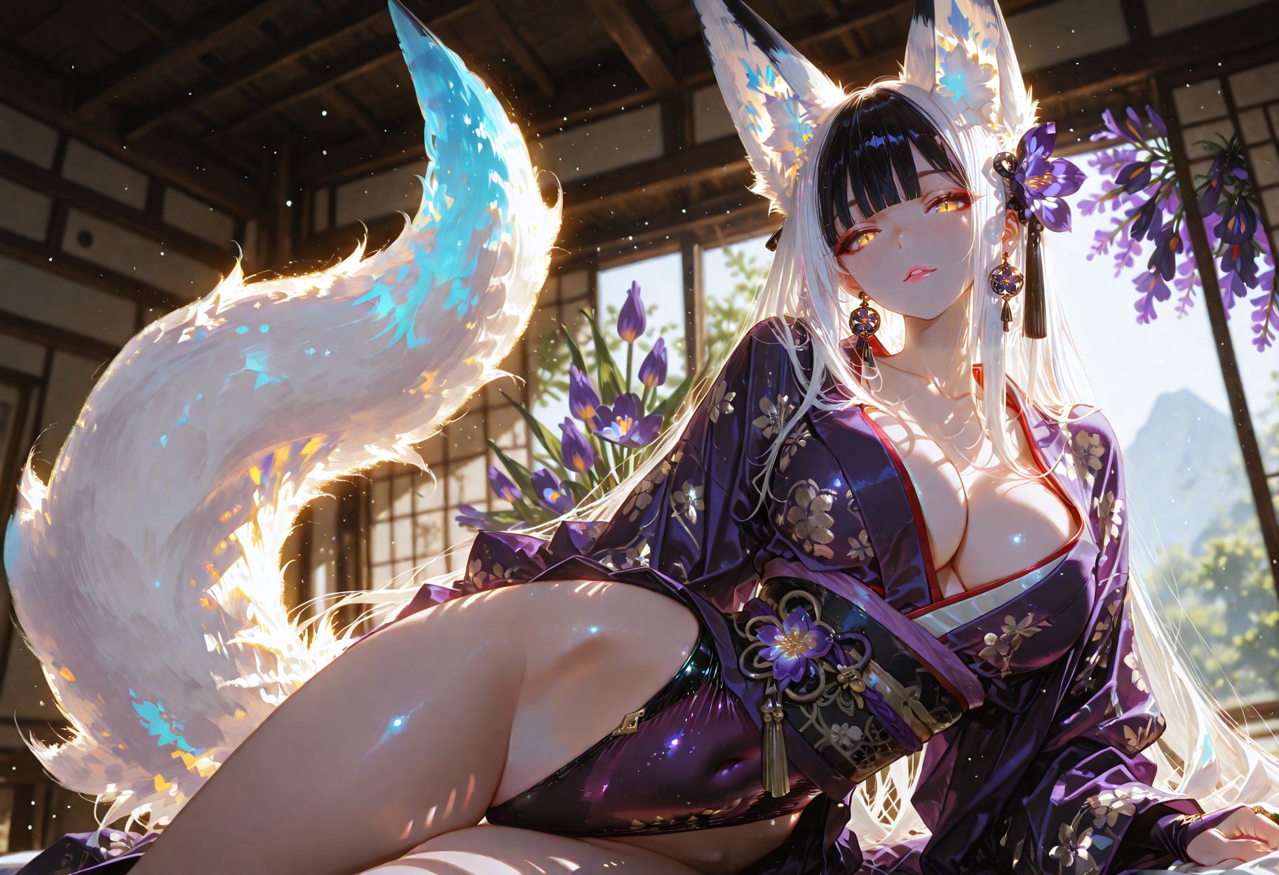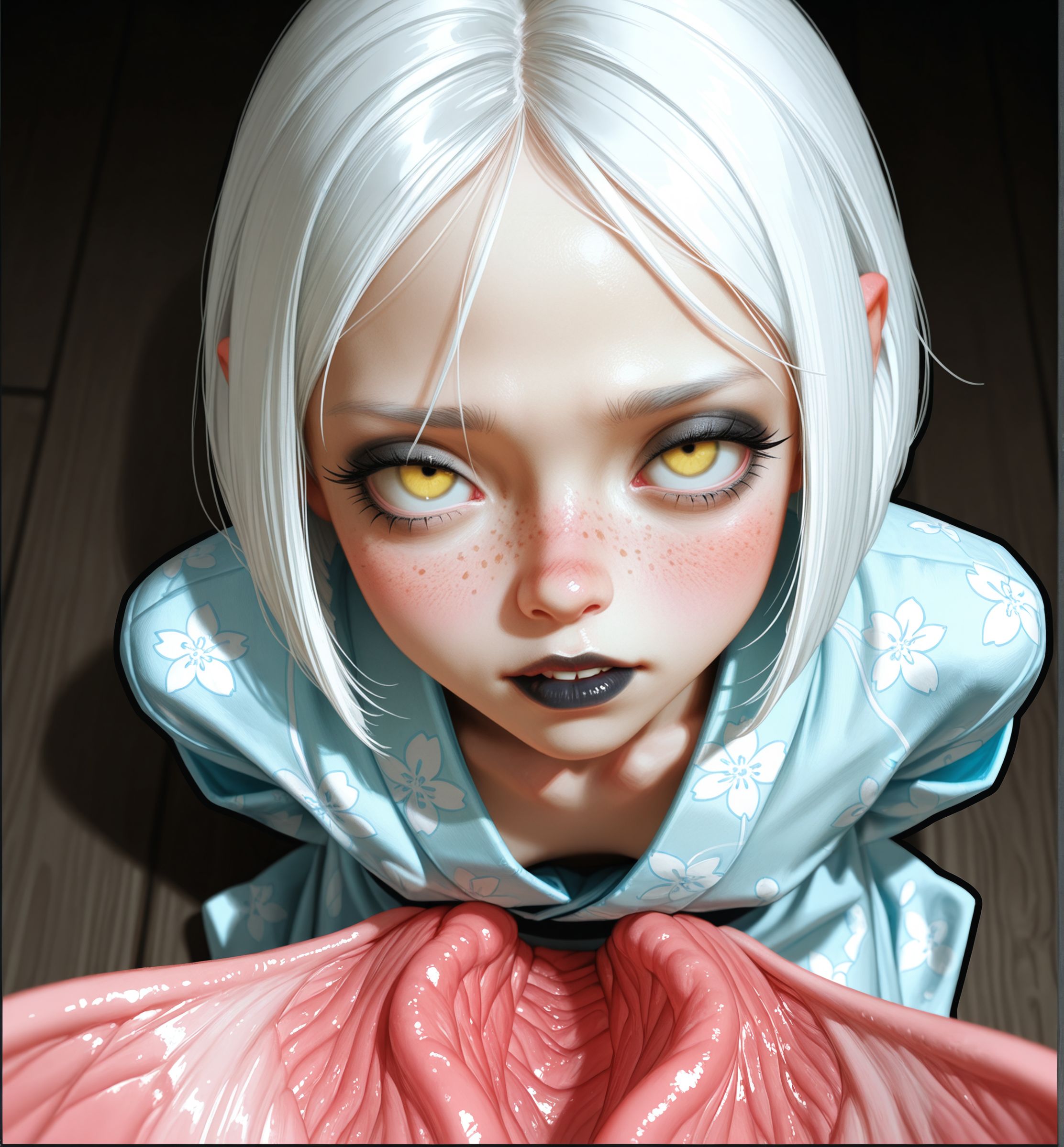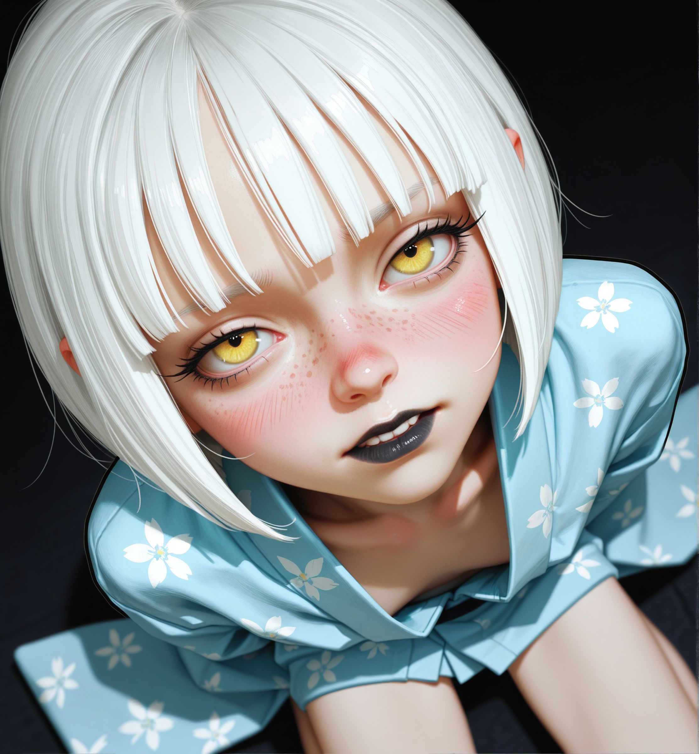 Requesting my daughterfu. She's got silver hair and gold eyes with a bobcut hairstyle and Japanese aesthetics.
