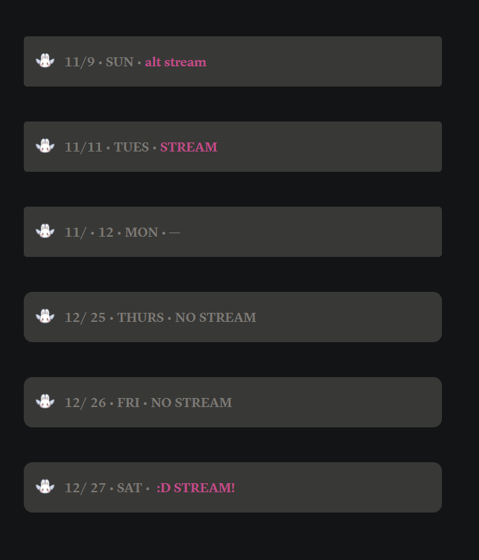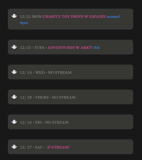 bonnie updated schedule after 2 monthsno christmas streamno birthday streamback on the 27th