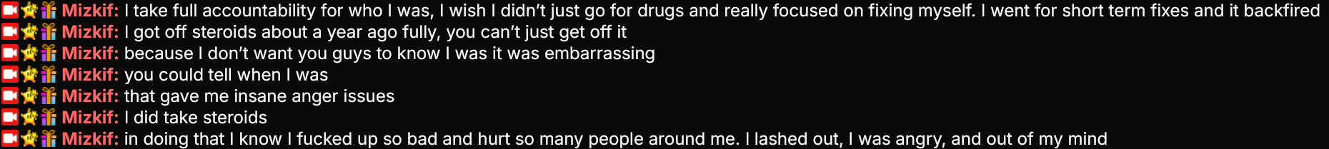 NMP beat Mizkif into the dirt on April 17, 2023. After the beating Mizkif reacted by committing to typical post-humiliation tropes.>Begins heavily abusing his girlfriend>Starts hitting the gym>Picks up using performance enhancing drugs>Opens a gym>Attends fighting classes in that gymIn the same time frame, NMP stays fat, unbothered, and jolly.