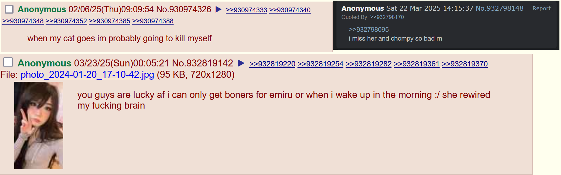 >>944177616They were reacting Emi's slutty goon baiting pic, and of course Emi entertains it