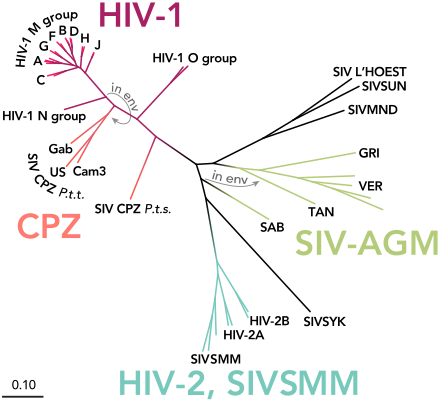 HIV-1, which causes the vast majority of global HIV infections, came from SIV in chimpanzees (Pan troglodytes troglodytes) in what is now southeastern Cameroon.