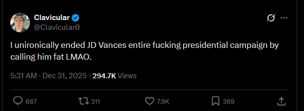 >>944260369not lately, he has implied before that he lost viewership because he isn't funny/entertaining anymore. Same thing with looking for a gf, he has said he hasn't had good luck getting a gf because of his looks.