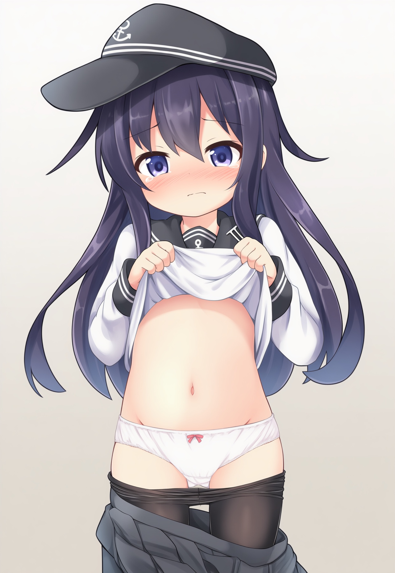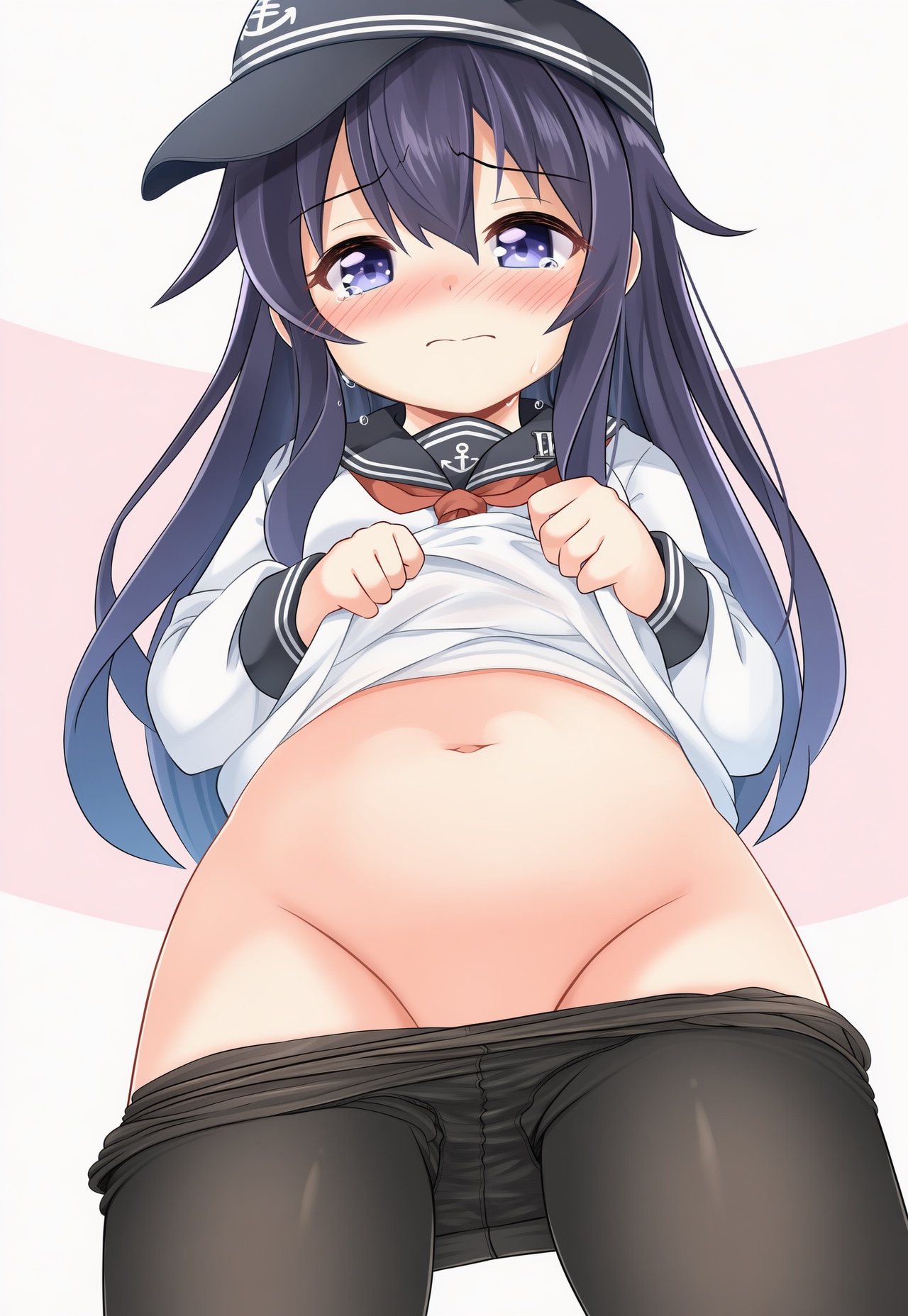 >>944346333I didn't know that was an actual character but WD14 seems to think >akatsuki_\(kancolle\), 1girl, solo, long_hair, looking_at_viewer, blush, blue_eyes, black_hair, long_sleeves, hat, navel, hair_between_eyes, school_uniform, purple_eyes, purple_hair, pantyhose, serafuku, tears, clothes_lift, groin, neckerchief, black_pantyhose, loli, no_panties, shirt_lift, clothes_pull, from_below, lifted_by_self, red_neckerchief, anchor_symbol, flat_cap, pantyhose_pull