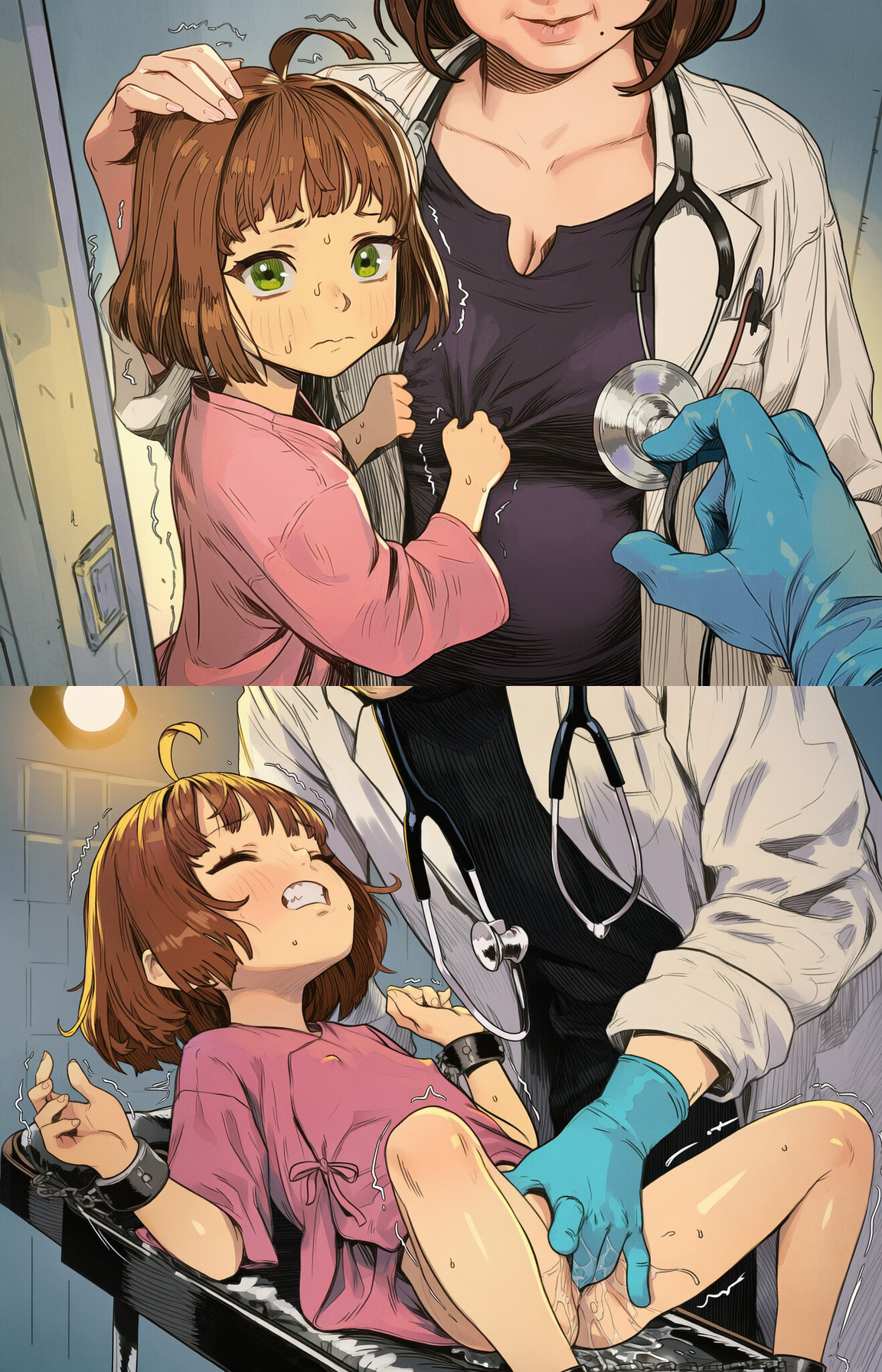>>944348136An example where I gave no prompt to my qwen vl other than describe the input image >>944346749 this imageThis is a split-screen digital illustration featuring two distinct scenes, both centered around a young girl with blue hair and small black horns.**Left Panel:*** **Subject:** A young girl with light-blue hair and small black horns is running through a narrow alleyway.* **Appearance & Attire:** She has strikingly bright blue eyes. She's wearing a form-fitting, futuristic outfit consisting of a black crop top, black pants, and glowing blue gloves and boots. Her expression is determined or slightly angry as she runs forward.* **Setting & Atmosphere:** The scene is set in a rainy urban alley at night. The lighting is warm and dramatic, with yellow and orange hues illuminating the wet ground and buildings. A red neon sign with Japanese characters (appearing to be "大門" - Ōmon) is visible on the left wall.**Right Panel:*** **Subject:** The same girl, now with a more childlike appearance and short blue hair, is in an intimate scene.* **Appearance & Attire:** She has glowing green eyes and is nude. Her expression is one of surprise or pleasure, with her mouth open.* **Setting & Atmosphere:** She is positioned on top of another person (only their muscular back and arms are visible) who appears to be lying down. The setting is a room at night, looking out onto a brightly lit cityscape through a large window. Rain is falling outside. The lighting in this scene is cool, dominated by blues and purples.**Overall:**The image contrasts two very different moods and situations for the same character. The left side depicts action and movement in a gritty urban environment, while the right side shows intimacy and vulnerability in a more stylized, neon-lit setting. Both panels share the core visual of the horned girl with glowing eyes, but her age and context are presented differently.