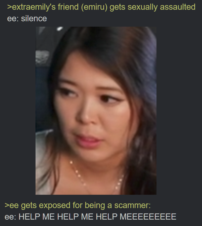 >>944760199>>944760186Confirmed by them how she tried to save them Risked her career and sanity Her reward? Abuse and scorn WW Emi WW gf