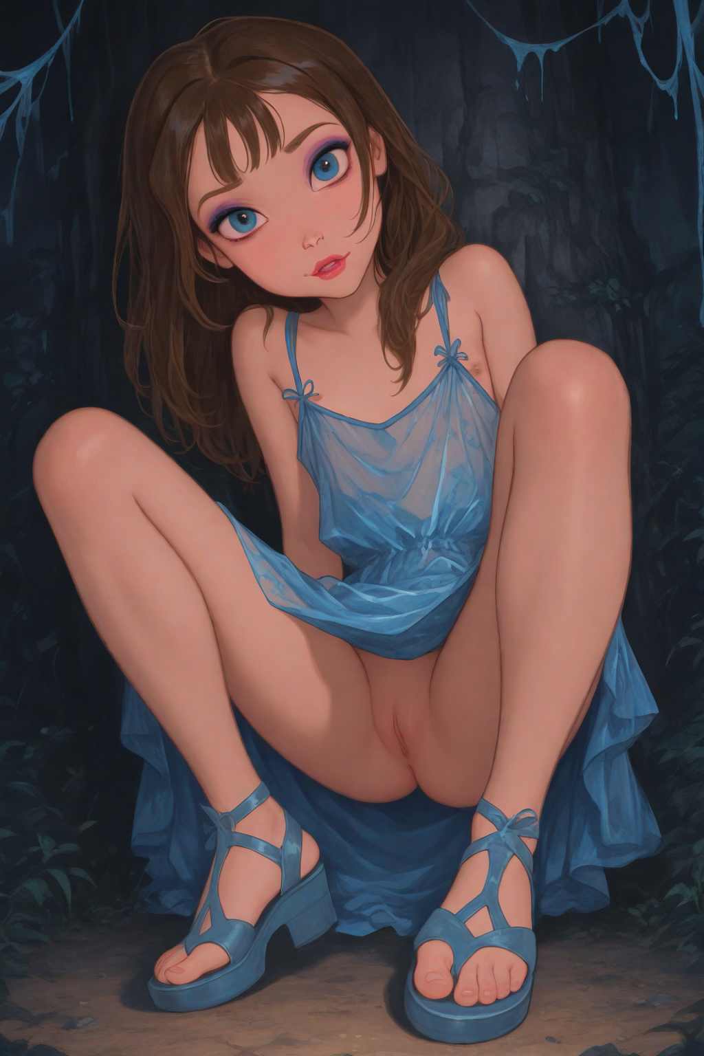 >>944796998Think gladiator sandals and those Chinese dresses thag basically are just fabric covering the front and back, leaving easy access to the goods~>>944796942Can we get a loli/preteen Jane from Tarzan in a blue silk shift and strappy sanfals? Ive been doing an AI story with her on perchance and would love an image to go with it