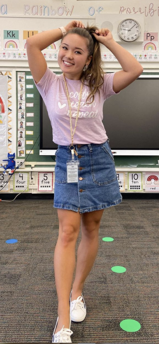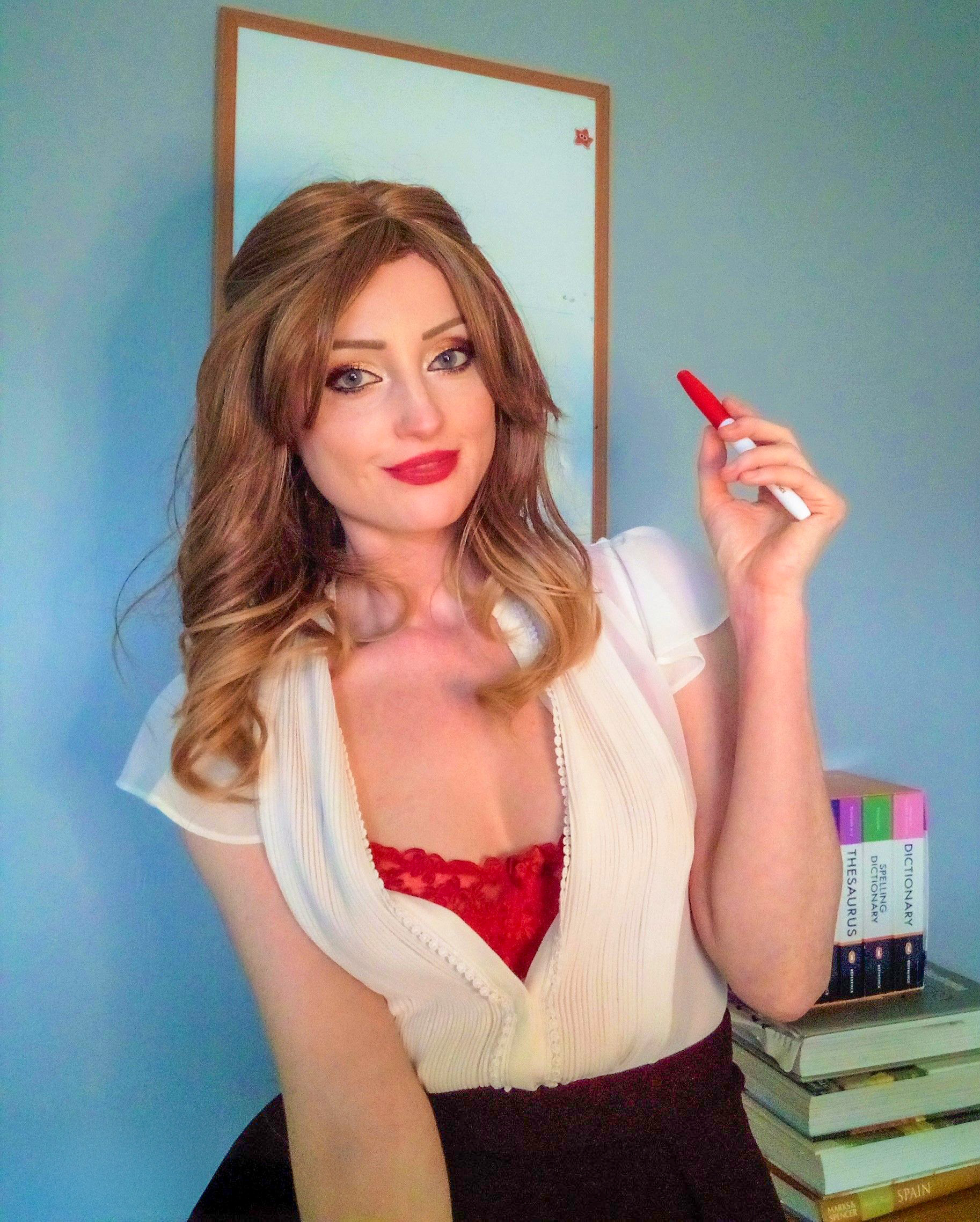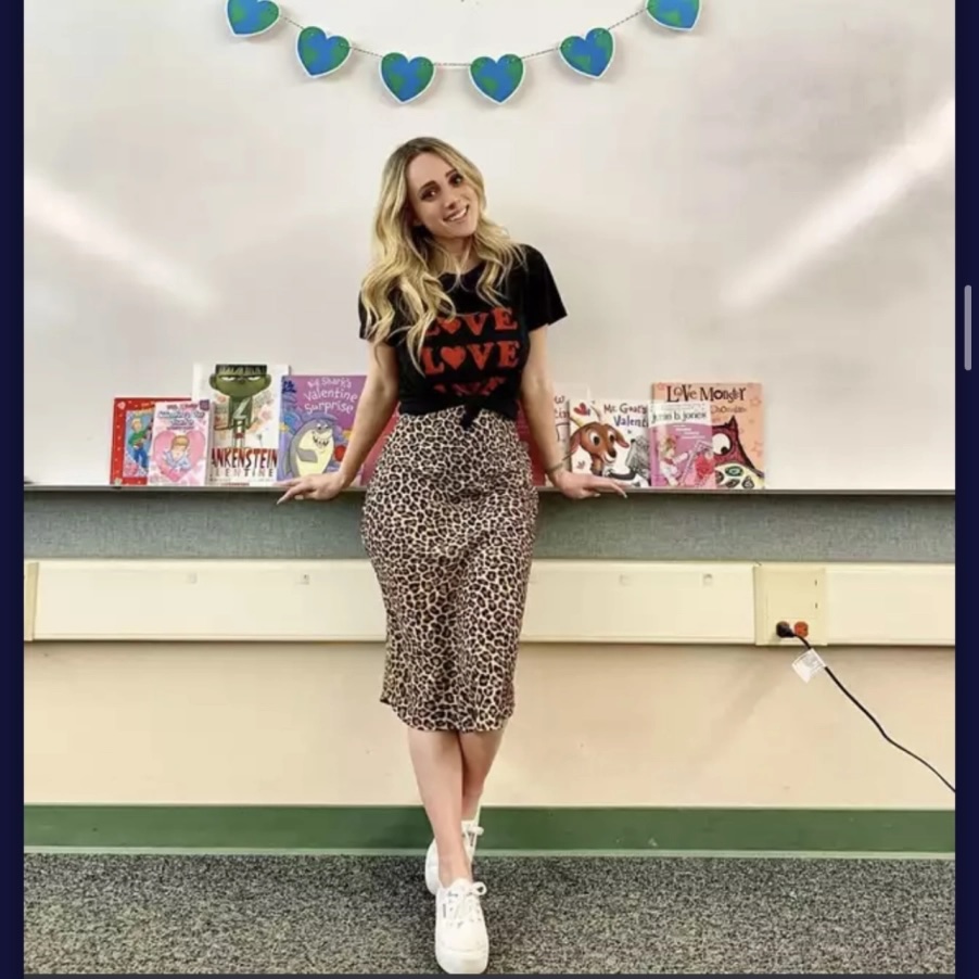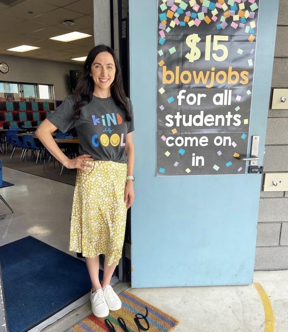 (Yes, she really is a teacher. Yes, she really did pose like that)