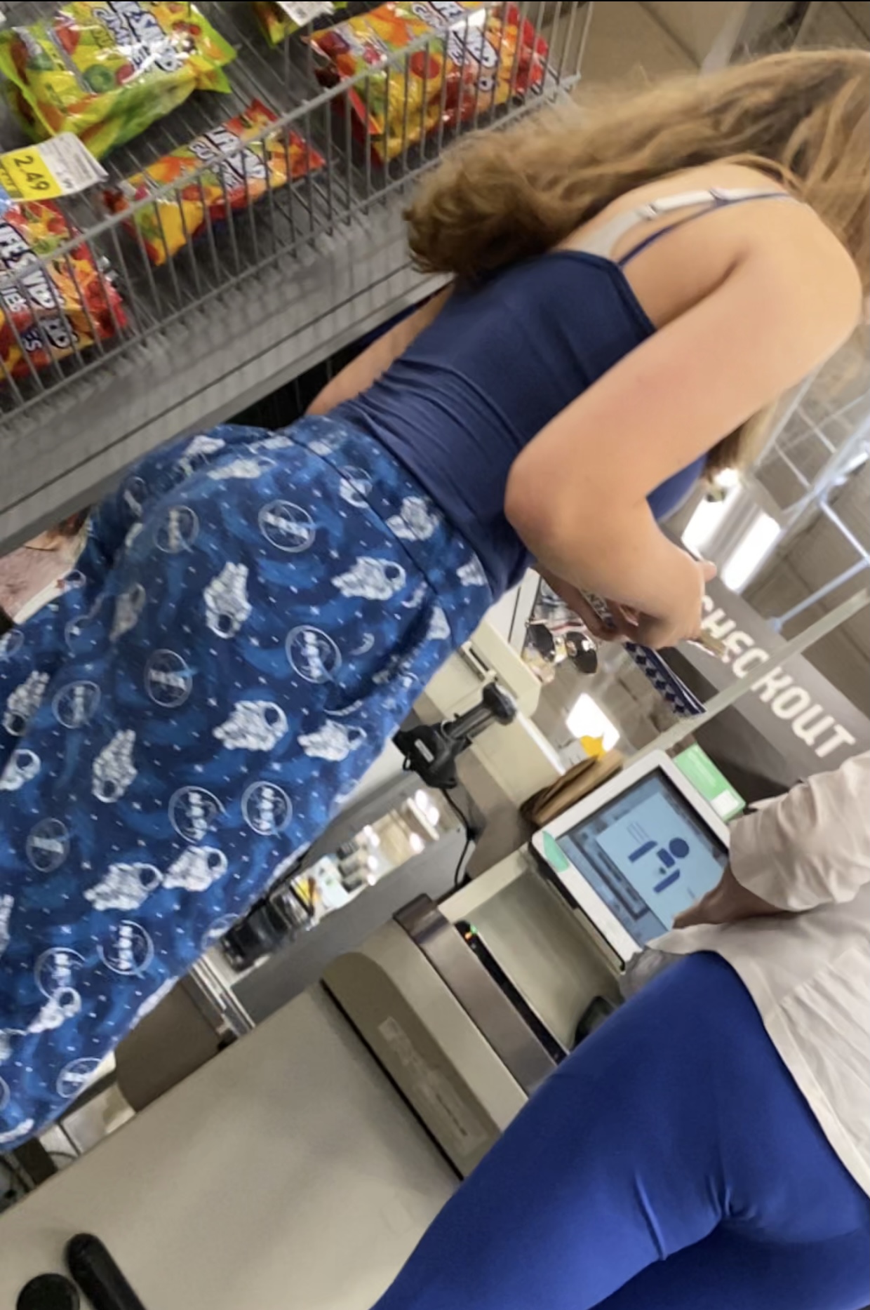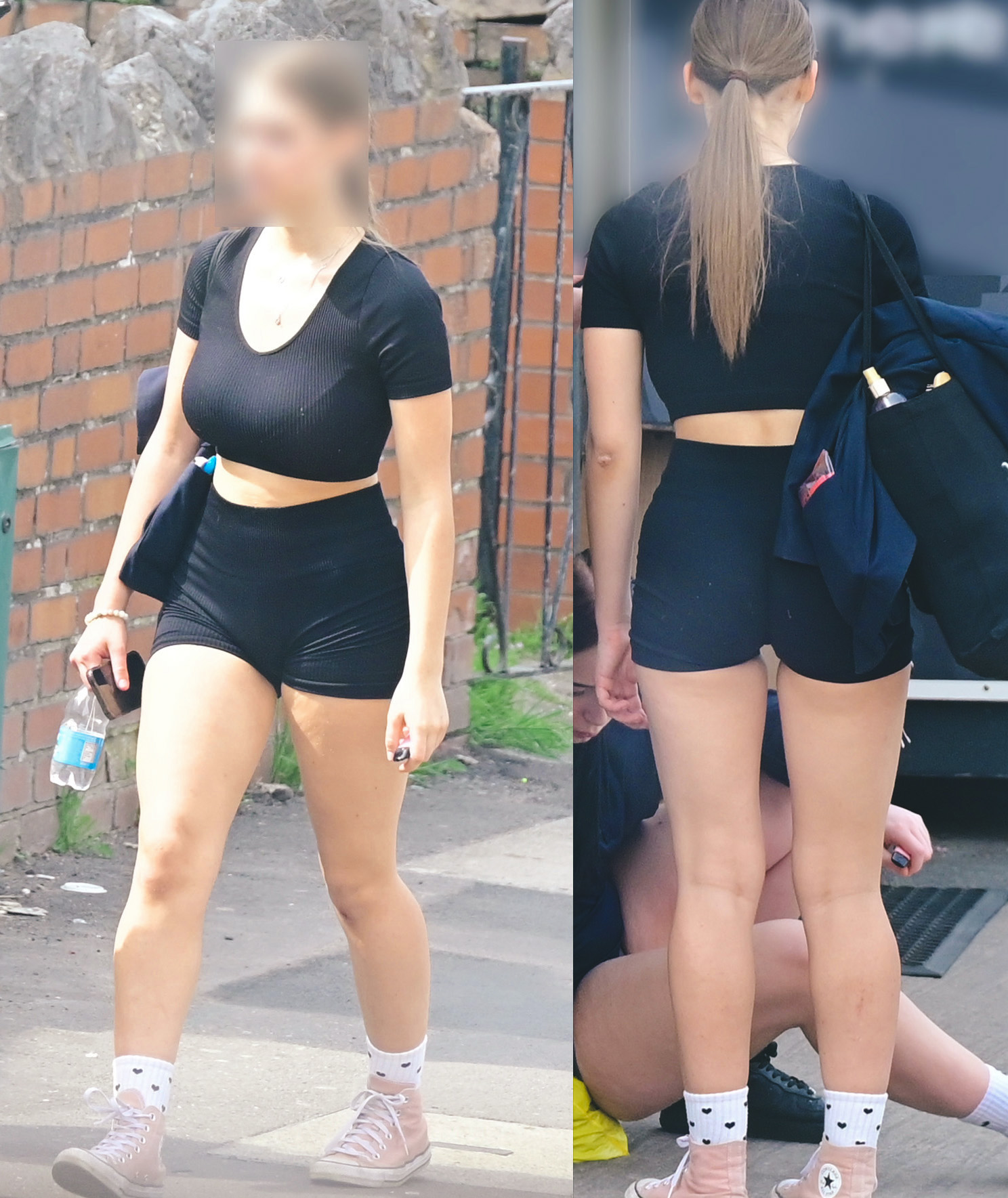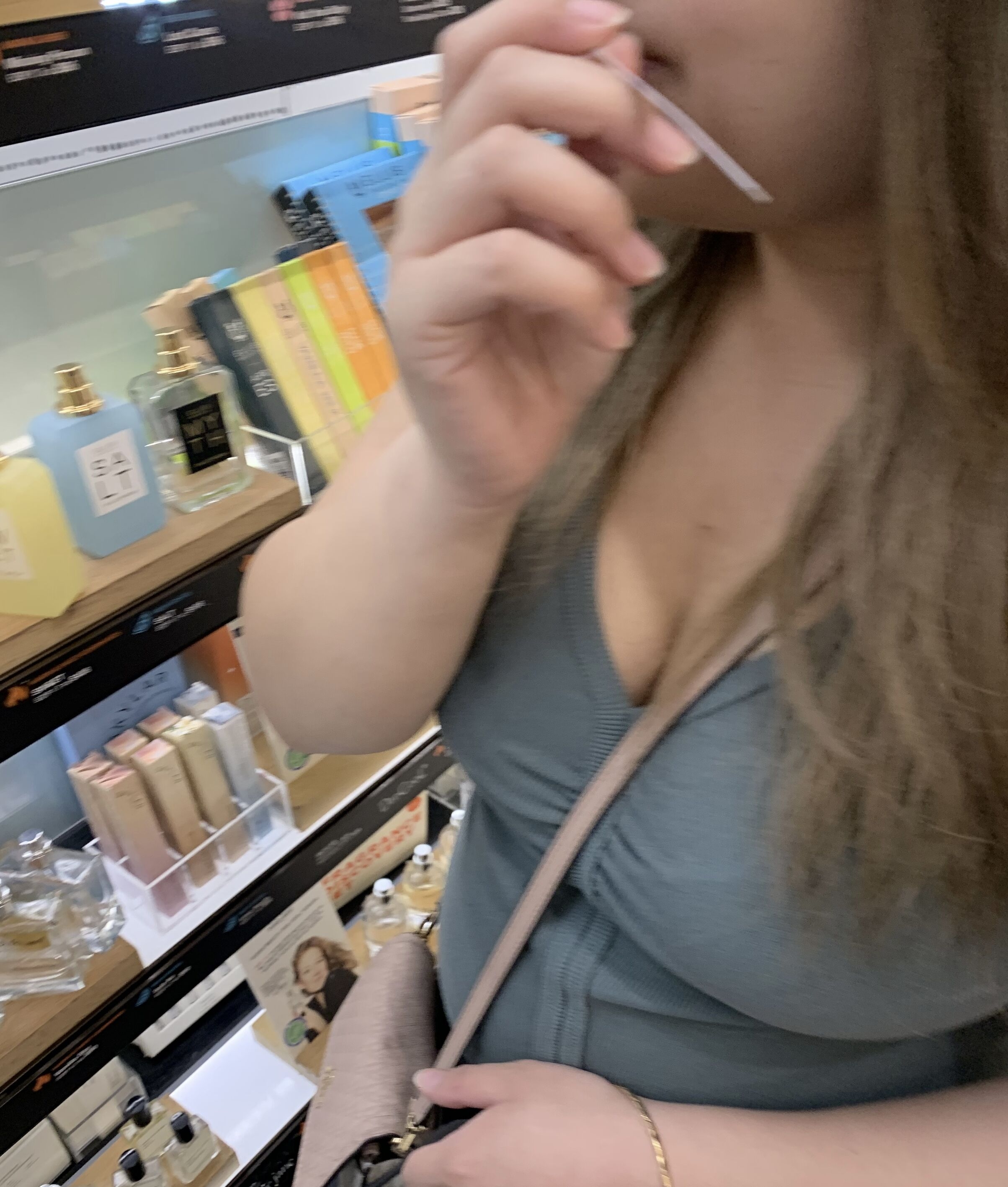 >>944862030nah they knew i was creepshotting them and caught me a few times so I never tried flirting. sometimes id pull my hard cock out and keep it under my shirt and brush it across their asses as I walked by. I should have covered their leggings in cum. kimberly is looking right at my camera in this pic