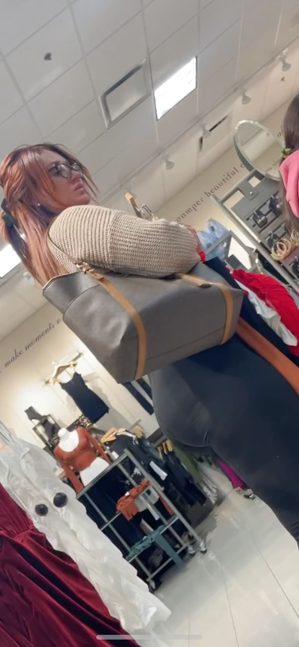 She was asking to be filmed walking around looking like this