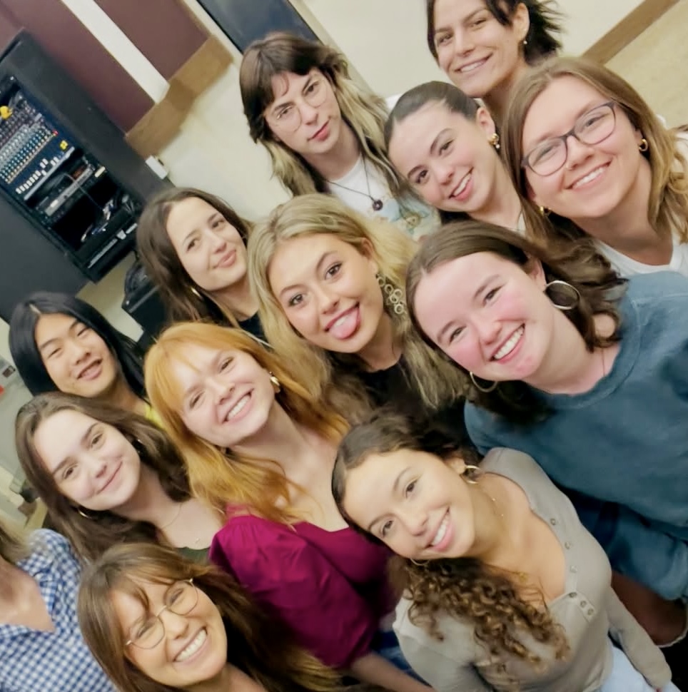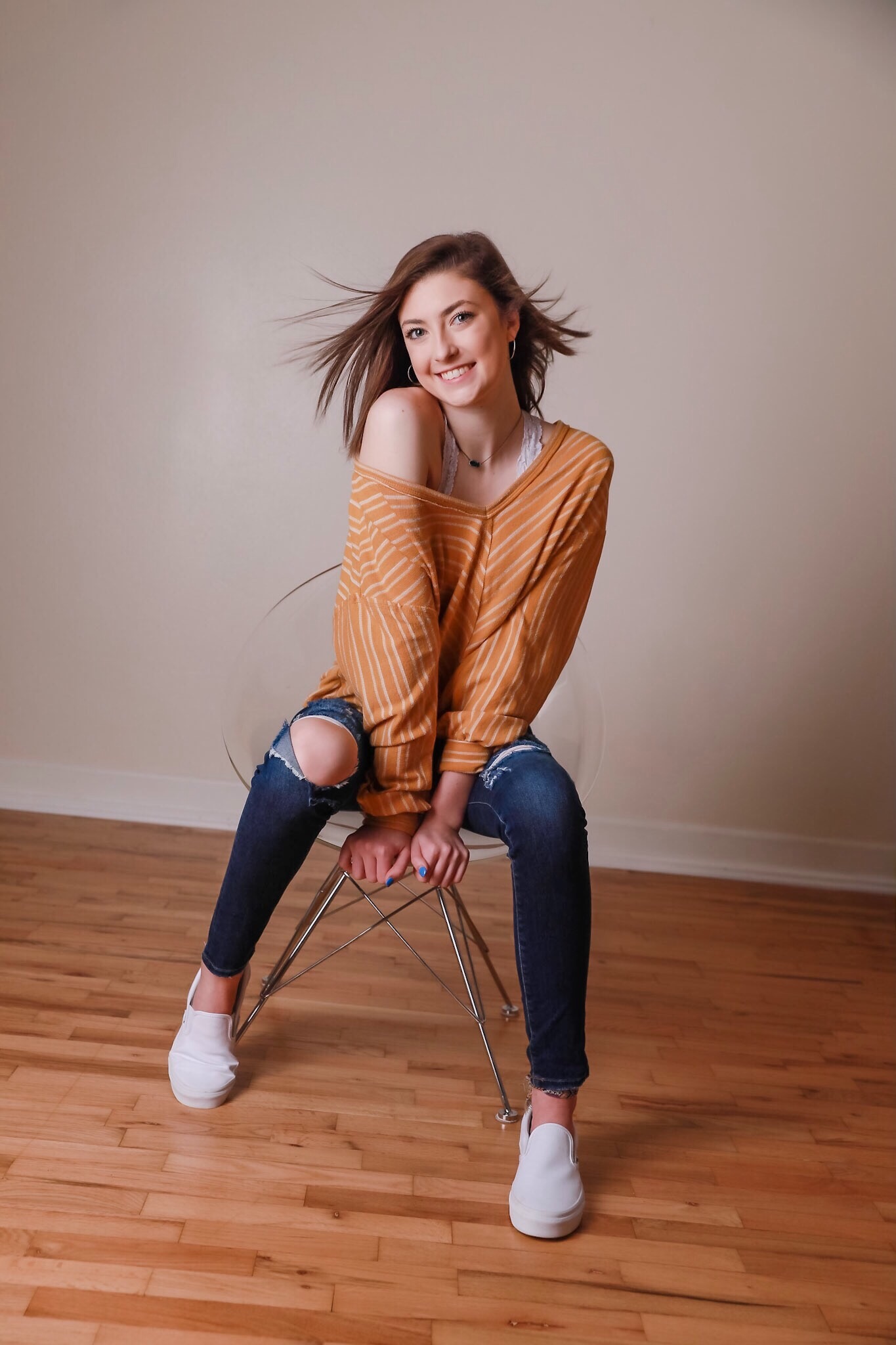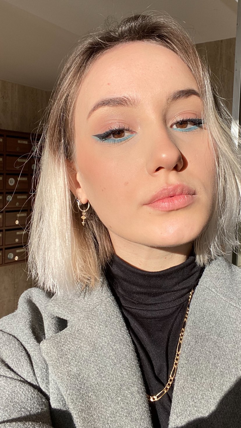 >>944878799the cutie in the front with loop earings and the blue shirt