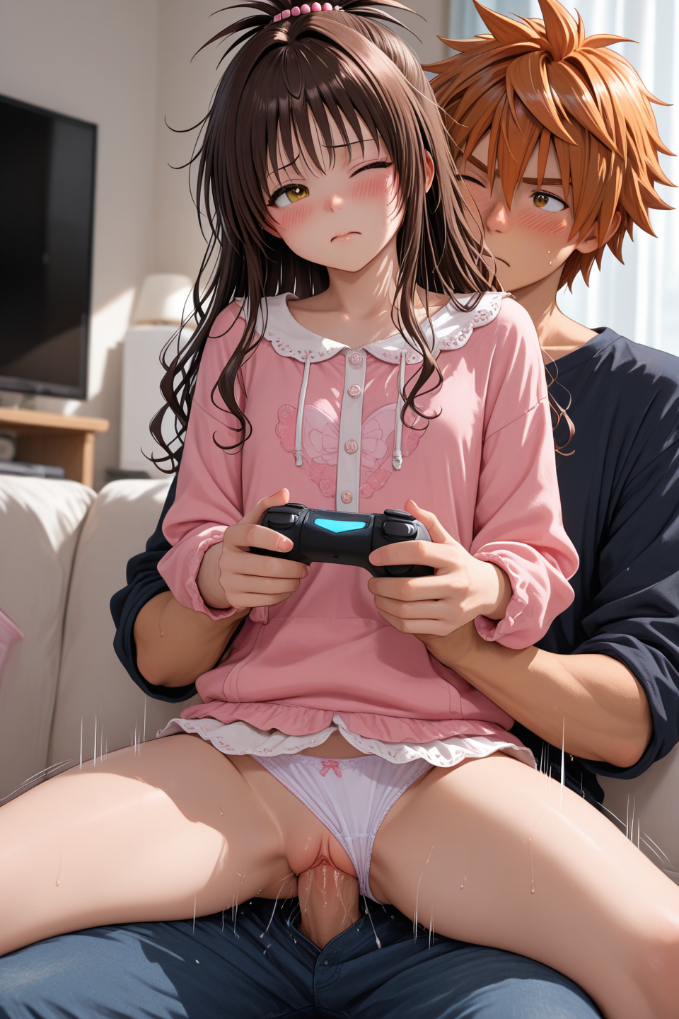 Can i request some Mikan X Rito from ToLoveRU with mikan sitting on rito's lap playing games with his dick inside her