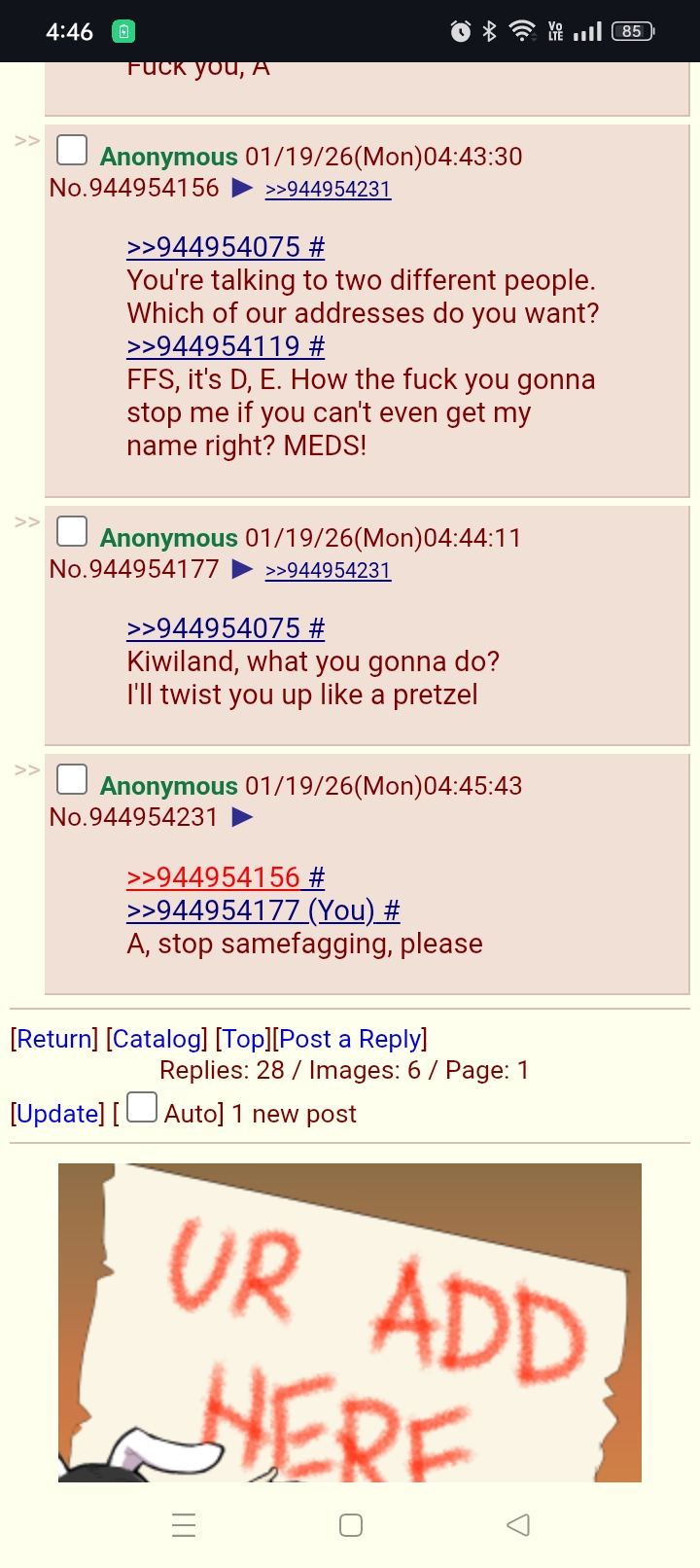 >>944954048>>944954063Where you live pussy?
